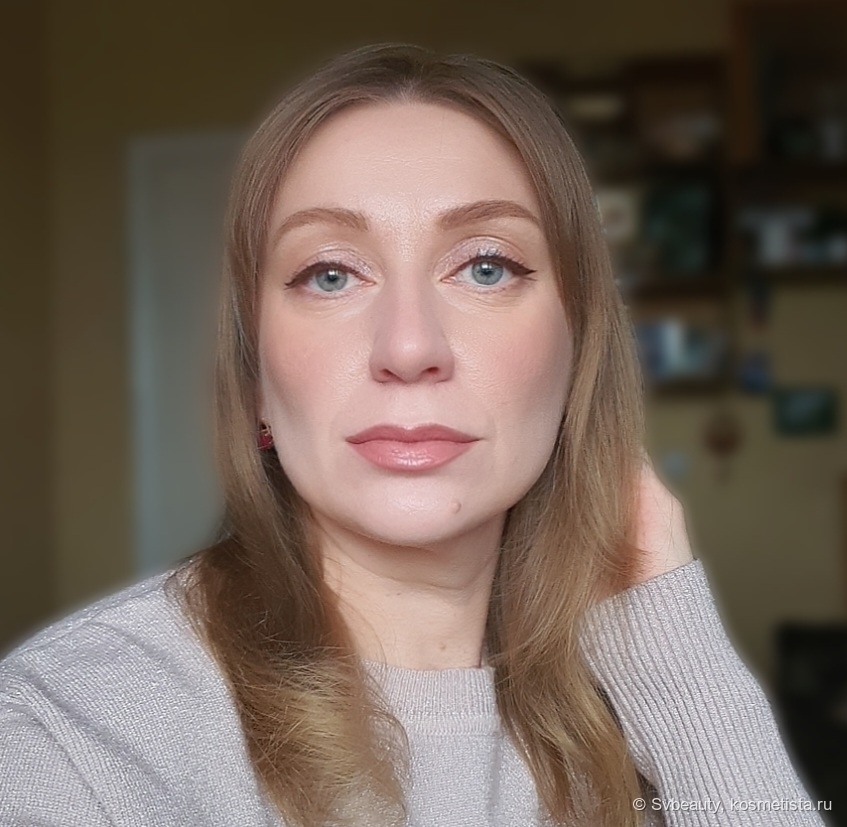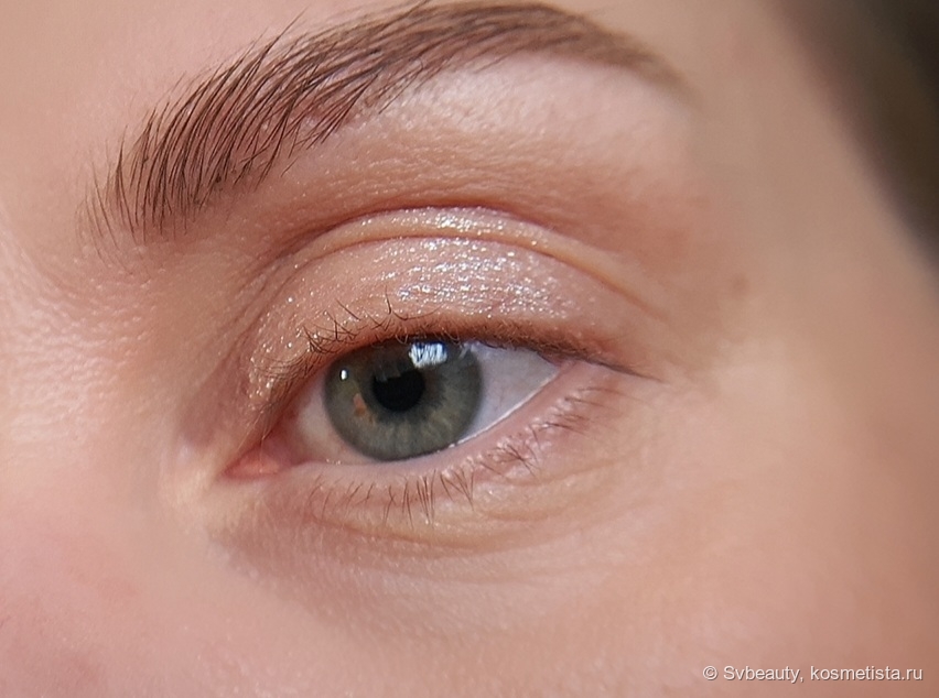 Меня особенно порадовало, что тени, нанесённые плотным слоем, не «жуют» веки, а создают эффект красивого влажного века.