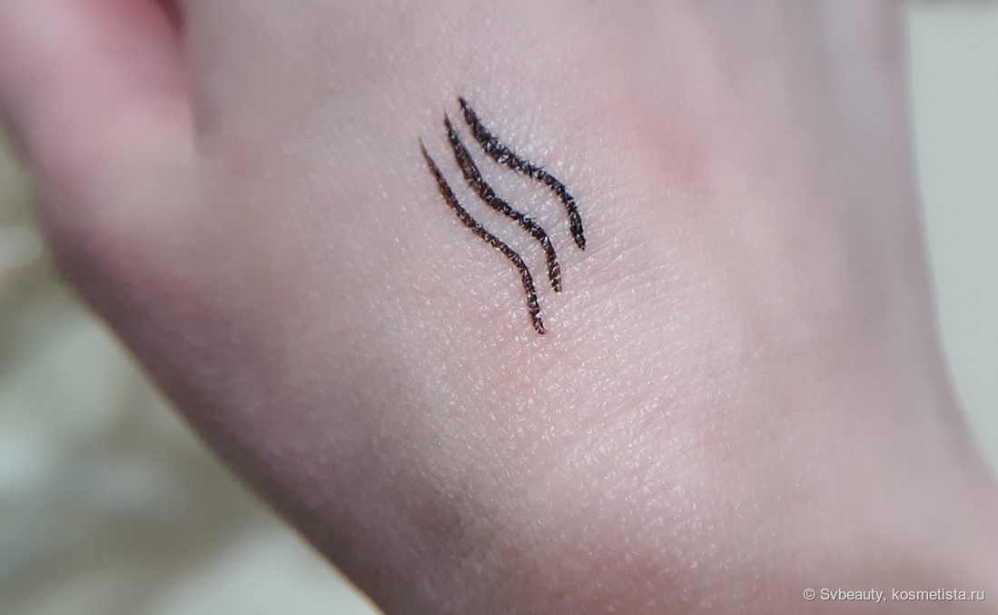 У меня лайнер коричневого оттенка. Как и многие другие бюджетные варианты, которые я пробовала, он имеет водную основу, из-за чего может показаться недостаточно пигментированным. Однако для моей светлой кожи пигментация оказалась идеальной, и подводка не выглядит слишком бледной.