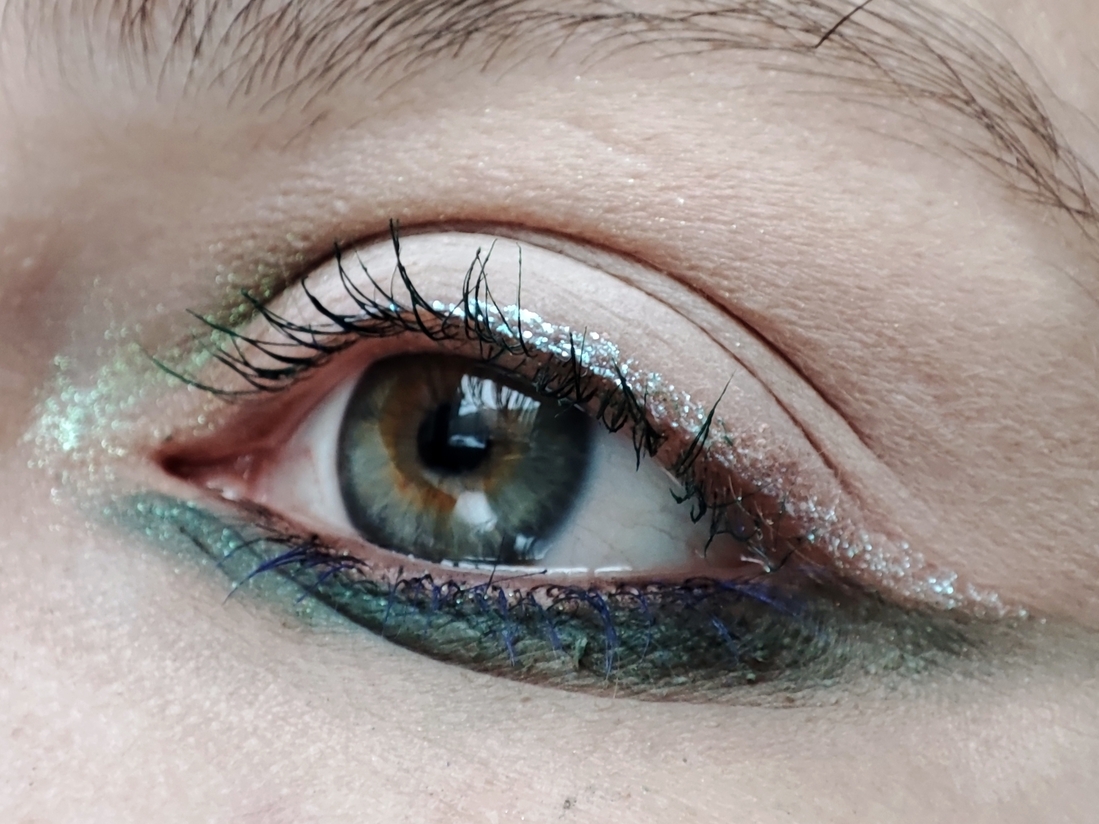 На базе. Froggy в графике, Birch light на все веко и в уголок. Не получилось не задеть рамку из зеленого, как задумывалось. По нижнему веку Cedar. Сияшка немного скаталась за час(