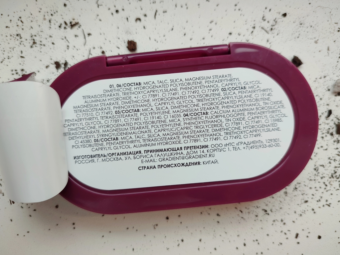 На изнанке, по традиции, наклейка с описанием, составом и названием оттенков.