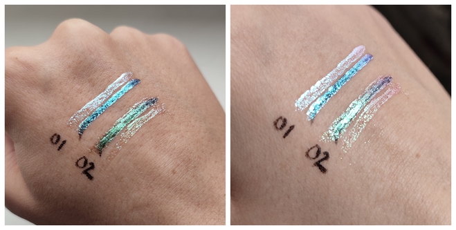 Какая же разная, ну красота! Это не трещинки, это она так сверкает. Наносится легко, кисточка послушная и хорошо распределяет подводку. Из-за того, что она полупрозрачная, в плохом освещении можно не сразу понять, легла она, где тыкнул, или нет, но проблема решается дополнительным освещением и поворотами головы😅