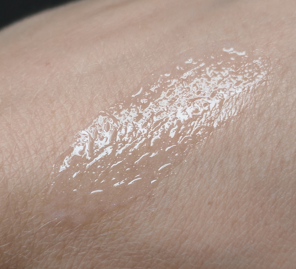 Бальзам имеет густую текстуру с множеством мелкого шиммера. Вот здесь начинается разочарование — шиммер ощущается на губах как будто песка насыпали. Так себе ощущение.