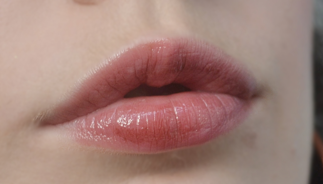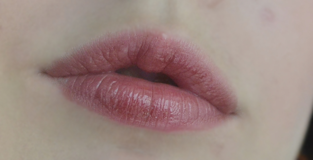 Сам же оттенок очень нежный, не выбеливает губы, не скатывается в полоску.