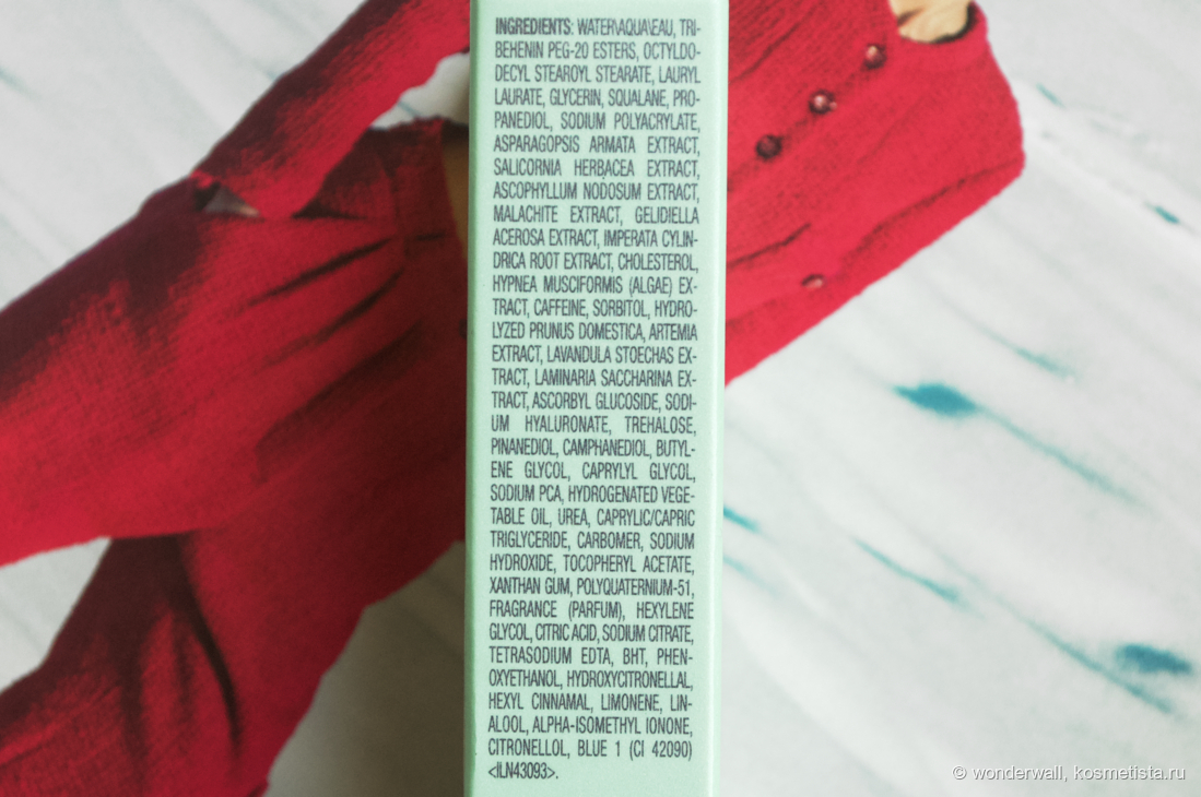 Прежде всего линейка Hydraskin опирается на экстракты морских водорослей, в составе они действительно указаны в приличном количестве. Также есть экстракт лаванды и кофеин.