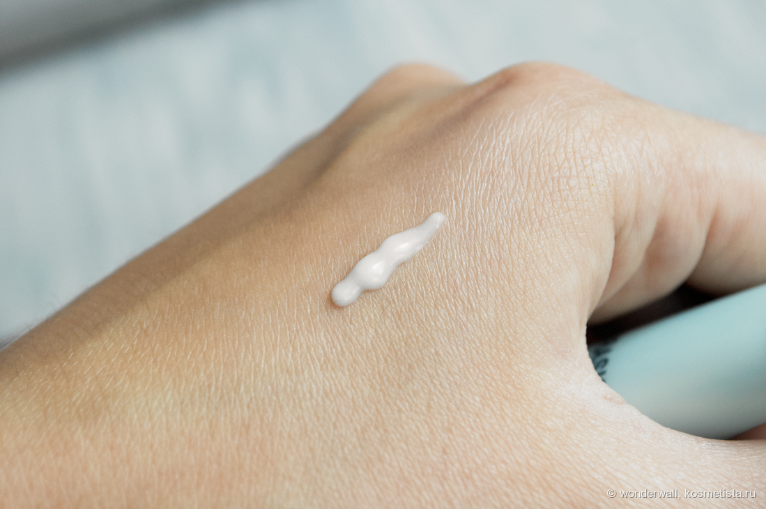 Текстура средней густоты, скользящая и влажная. Благодаря этим свойствам расход у крема небольшой.