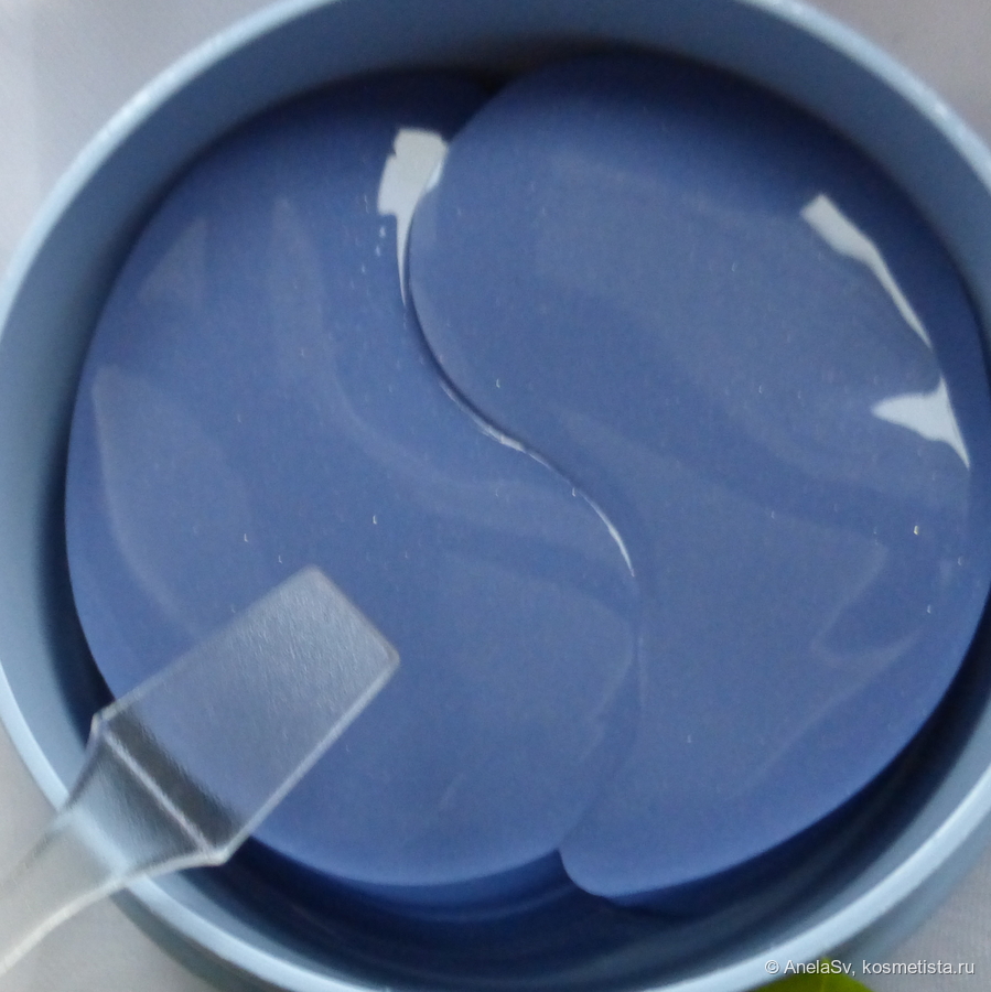 Упаковка выглядит очень стильно: небесно-голубая коробочка, внутри — такая же баночка с ложечкой для удобного извлечения патчей. Сами они тонкие, гибкие, невероятно красивого сине-фиолетового оттенка и практически без запаха. Пропитки в них ровно столько, сколько нужно — они не текут, но и не пересыхают, благодаря чему отлично фиксируются на коже и не сползают.