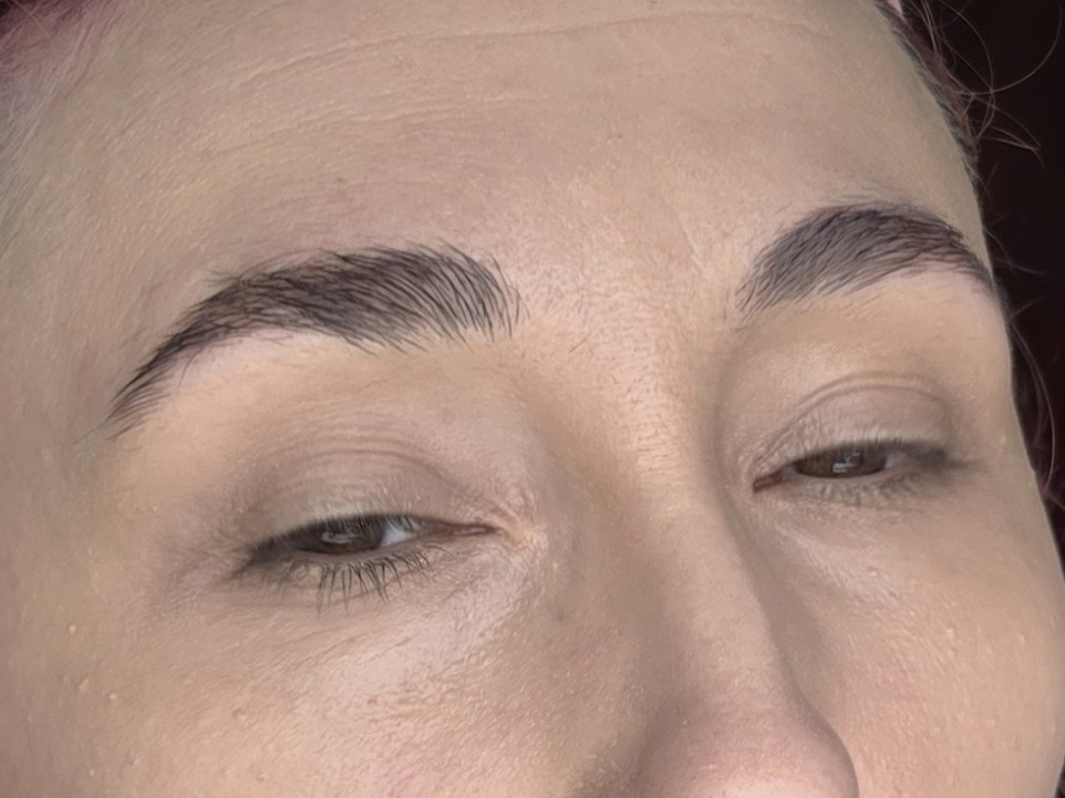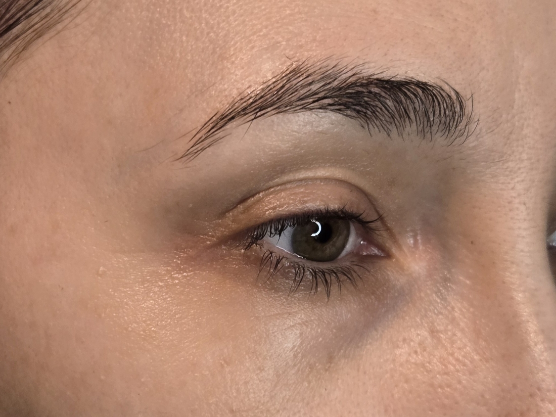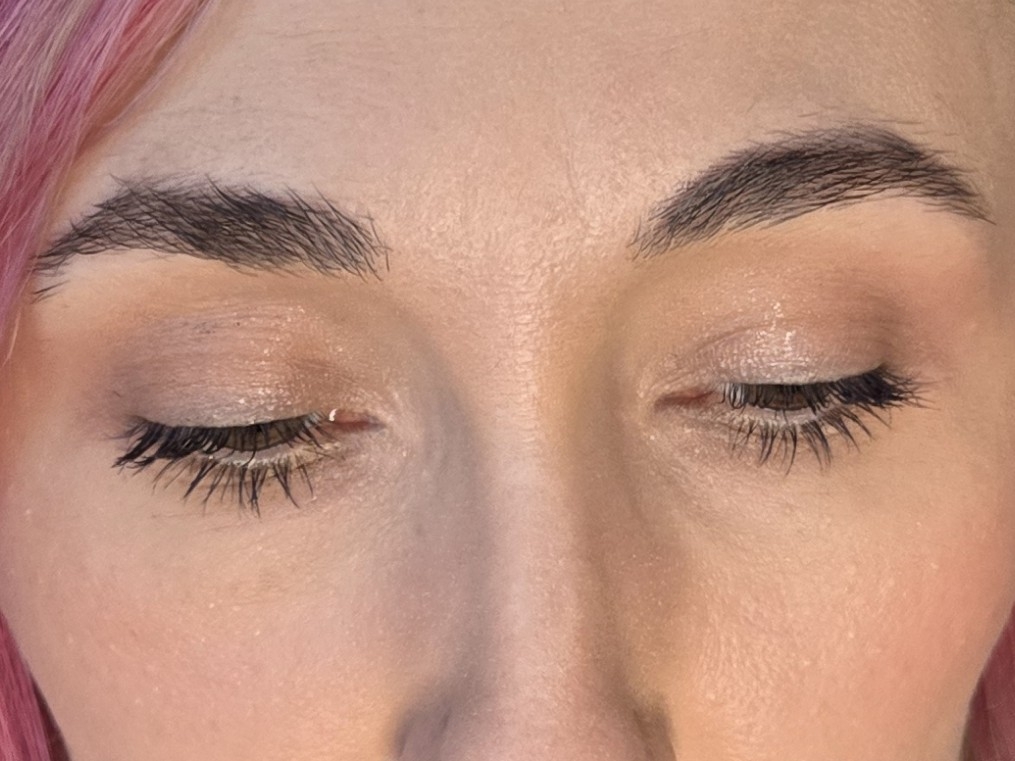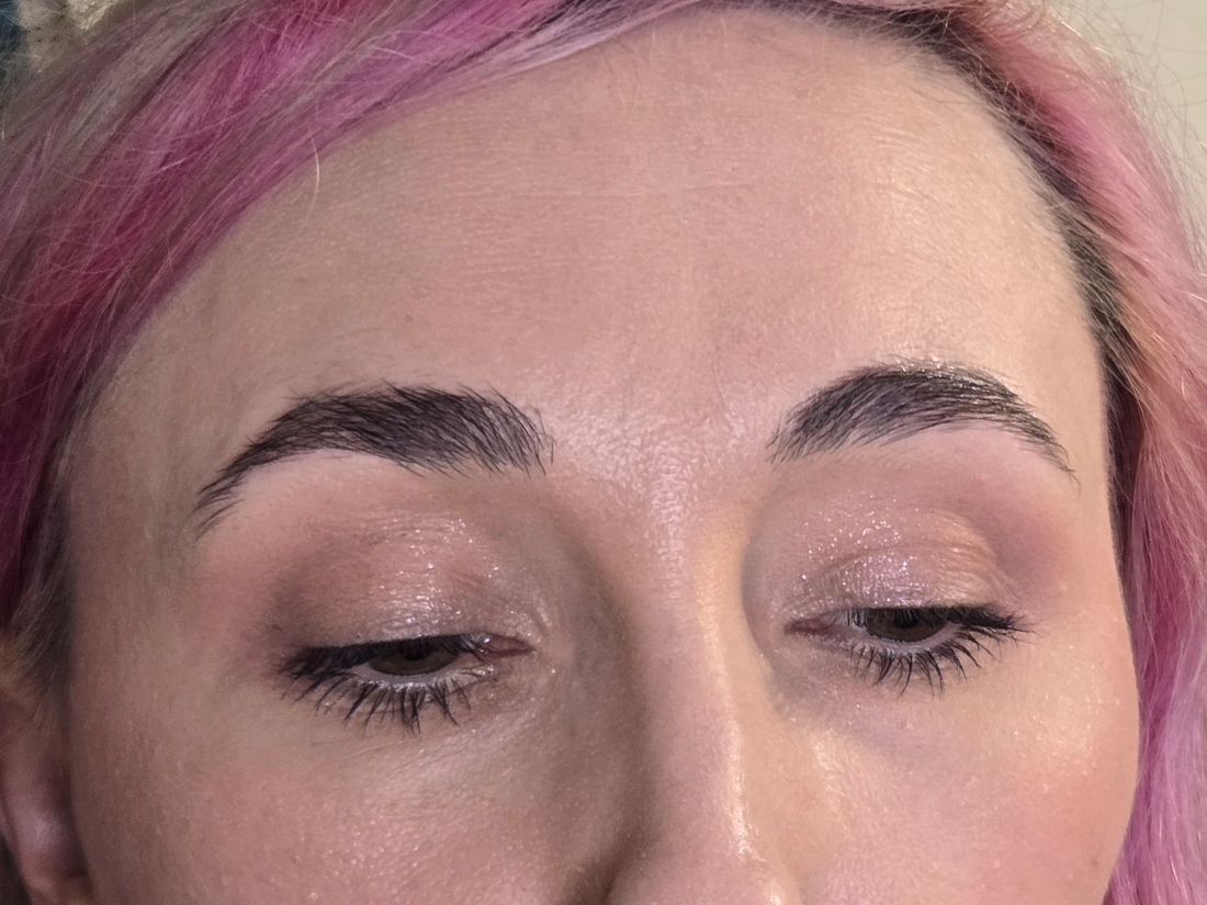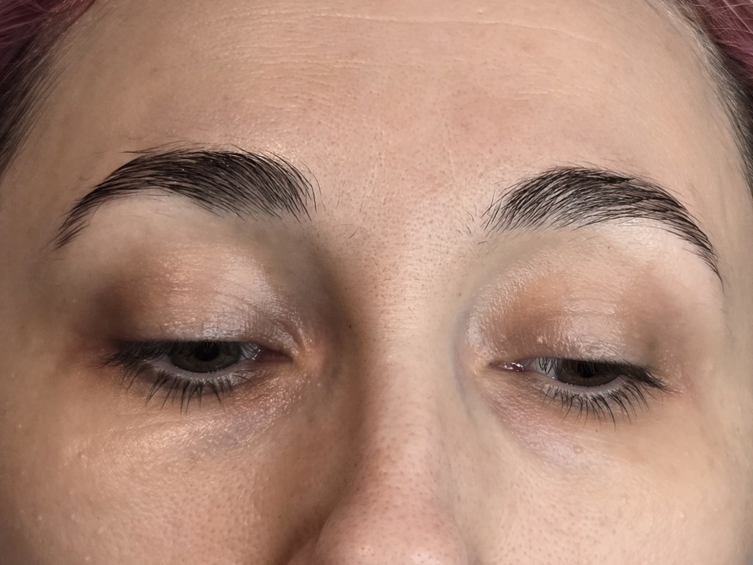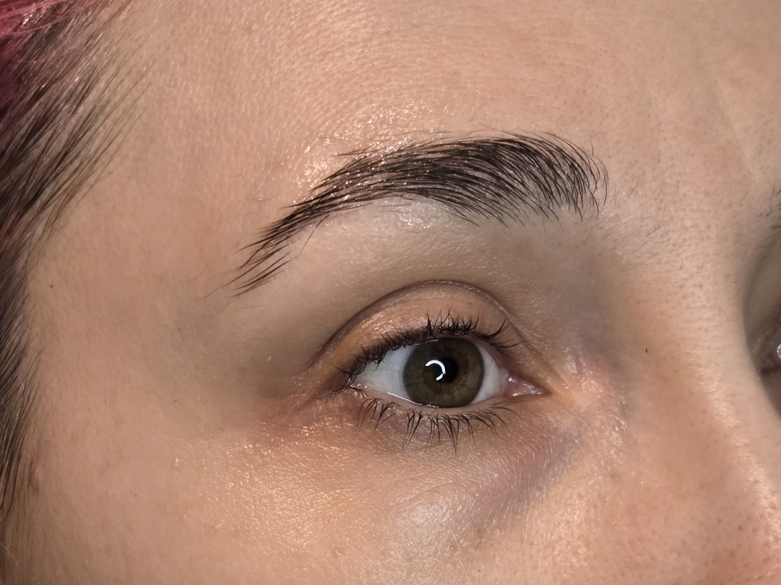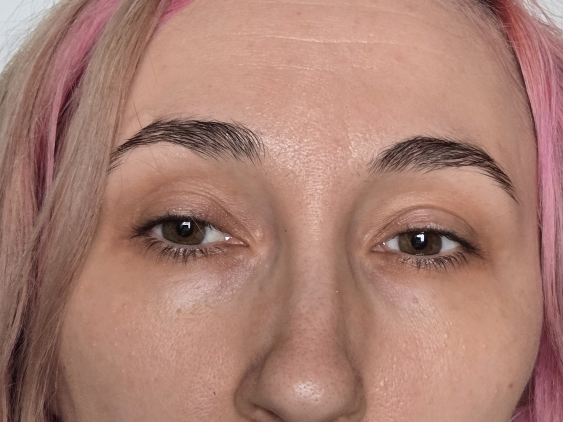 Только что уложенная бровь. Да, средство часто попадает на кожу, но ничего в этом месте не случается. И брови сначала кажуться будто ламинированными, но потом блеск пропадает и будто я с такими бровями и проснулась.