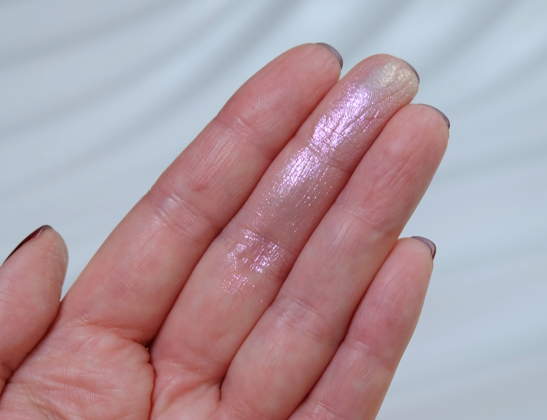 Оттенок № 3 — серо-лиловый полупрозрачный спаркл с ледяными вкраплениями. О, это мой фаворит! Как же красиво от смотрится на веке! Чуть ниже покажу его в деле и Вы сами все поймете. Можно нанести его на все веко и уже будет красиво! На свотче я хорошенько наслаила его, поэтому выглядит довольно темным, на веко наношу небольшое количество для создания сияющего влажного эффекта.