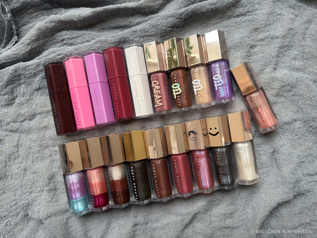У меня как-то спрашивали, сколько у меня всего средств Fenty Beauty, — у меня их 19 (на самом деле, 21, но 2 блеска я потеряла. Один — давно, и, думаю, безвозвратно, второй — не очень давно, и надеюсь, что возвратно). И, да, 10 из 19 я купила этой осенью. Я фентиман 😬