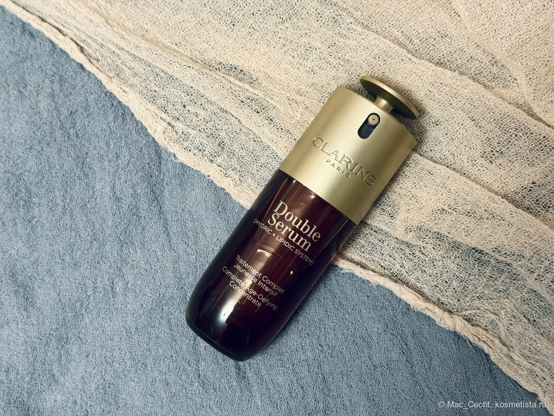В этой категории у меня два вида средств. Главное — это сыворотка Clarins Double Serum Hydric+Lipidic System.