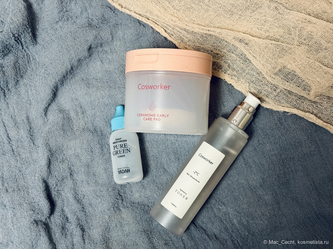 И пришло время тонер-пэдов Cosworker cerahome earlycare care pad. В теплое время года они были жирноваты для кожи, а сейчас отлично. Плюс тру ребристой стороны от души, отшелушиваю кожу. Буду скучать, когда закончатся.