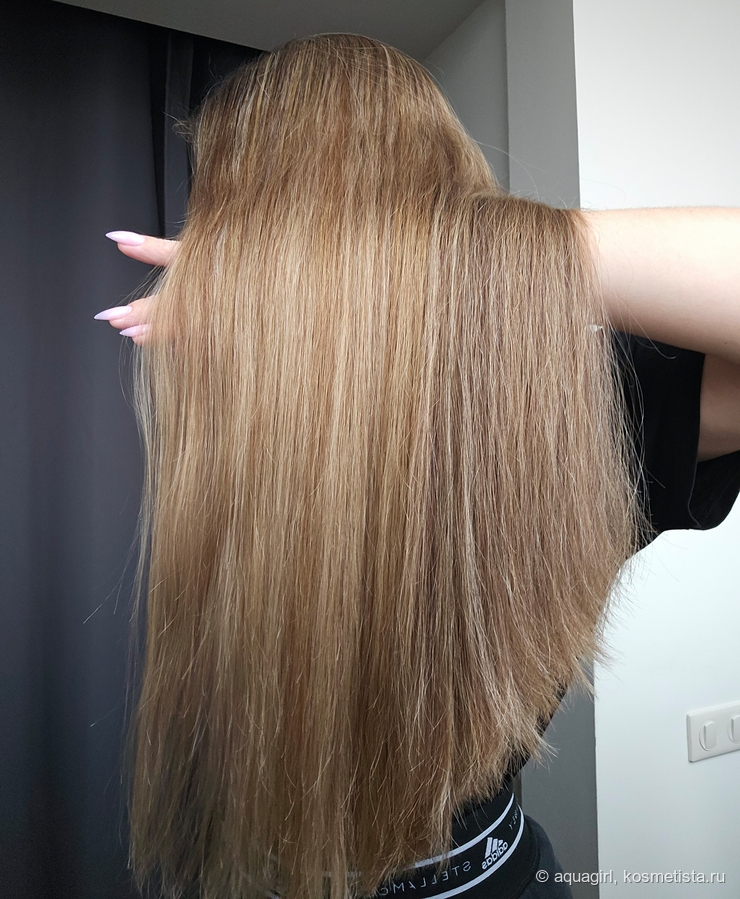 Высушенные волосы ощущаются плотнее, становятся гладкими, эластичными, легко расчёсываются и меньше путаются.