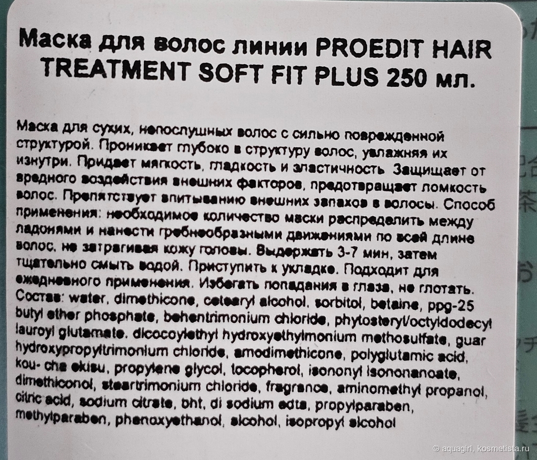 Lebel Proedit Soft Fit + Treatment предназначен для сильно повреждённых волос — это как раз мой случай. Я полтора года осветляю их порошком и без должного ухода на голове в лучшем случае будет солома. Кроме того, по сравнению с прошлым годом у меня значительно отросла длина и это тоже усложняет ситуацию.