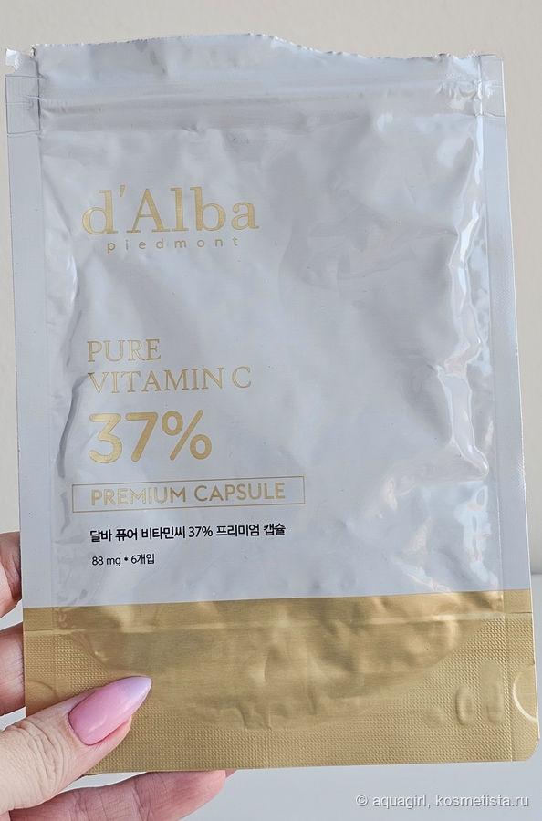 Дело в том, что в пакете находятся 6 капсул, внутри каждой горошина. На горошину нужно попшикать тонером, после чего она быстро растворяется и у нас получается одноразовая порция сыворотки объёмом примерно 1 мл.