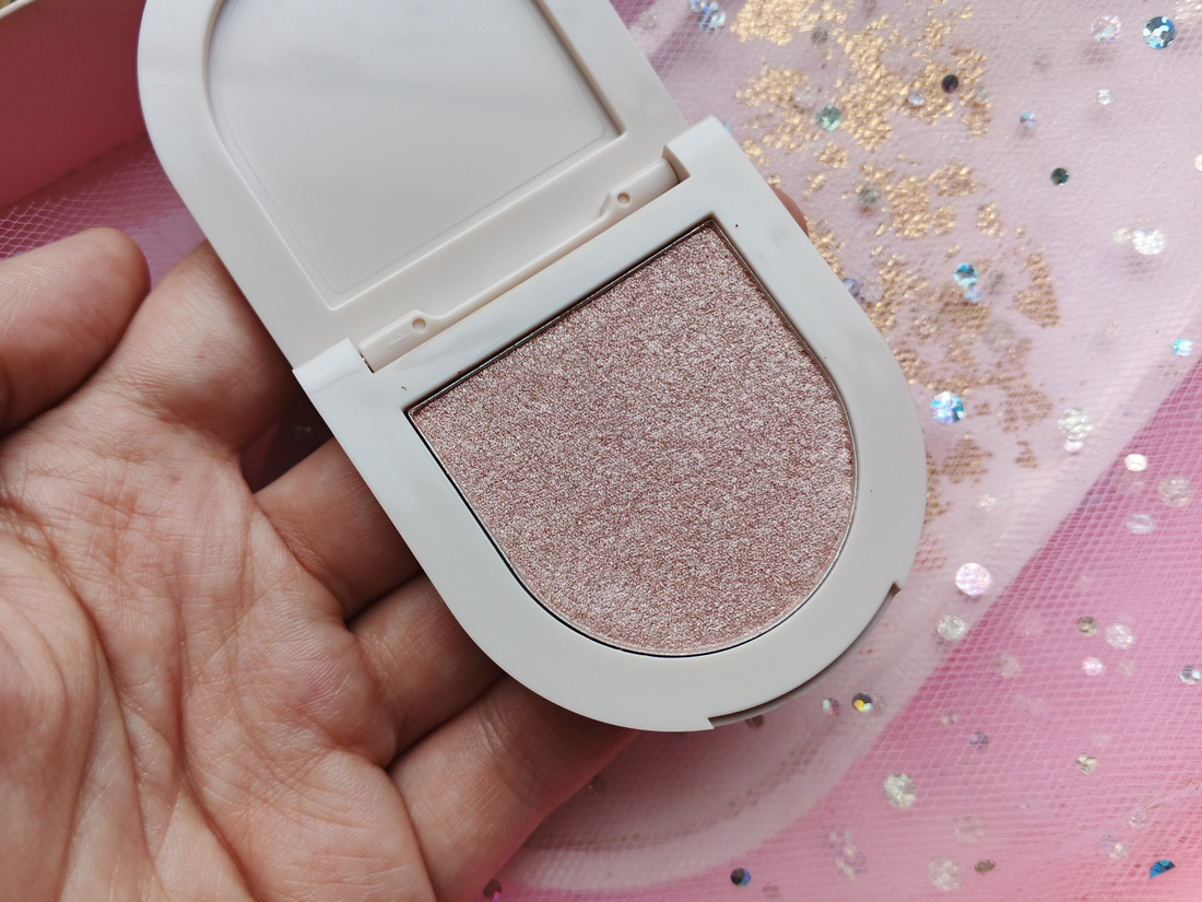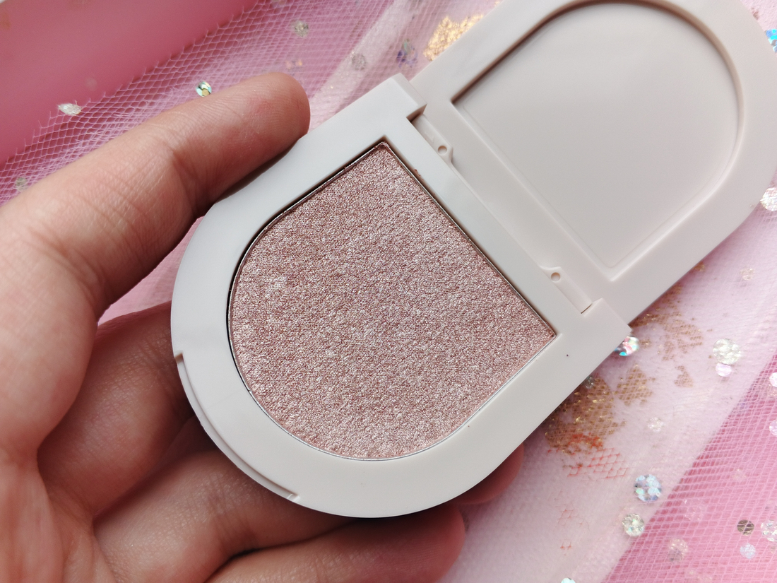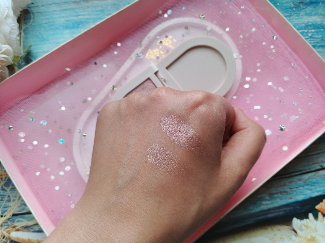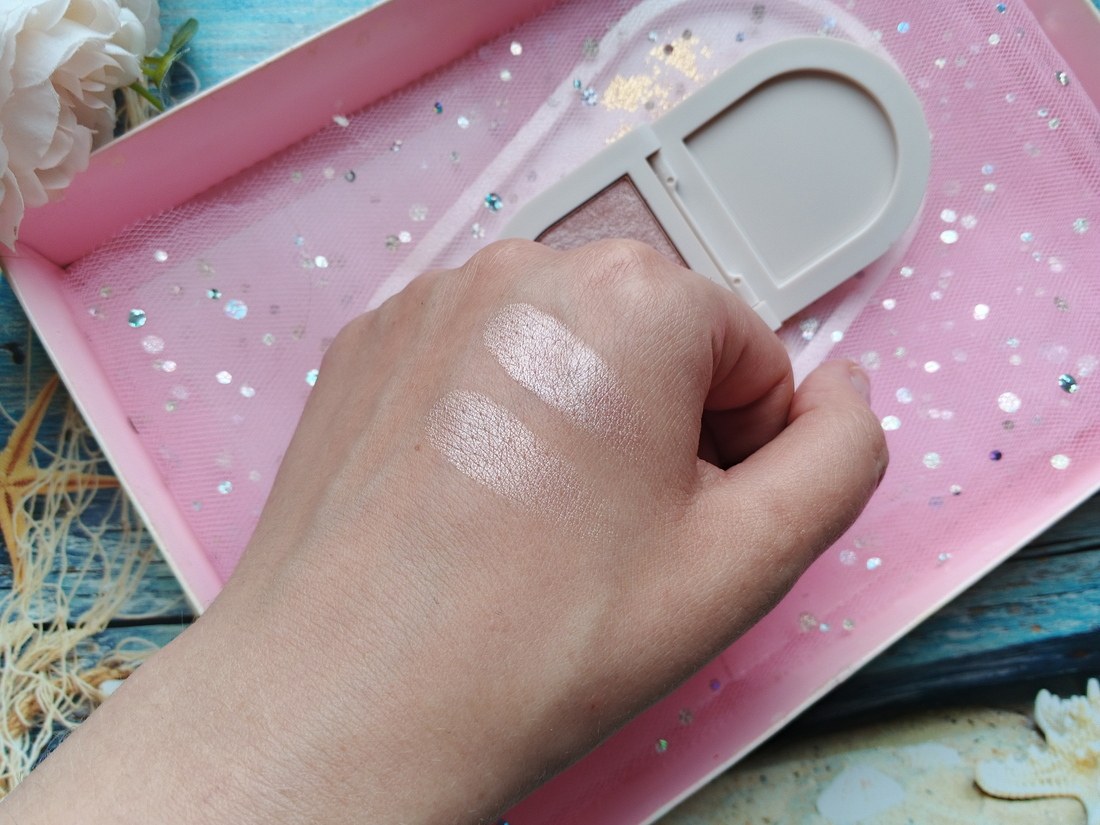 Хайлайтер выпускается только в одном оттенке — 01 Golden Prism. Мне он понравился — деликатный, на прозрачной базе, с нейтральным подтоном. На свотче чуть розовит, но на коже я этого не вижу.