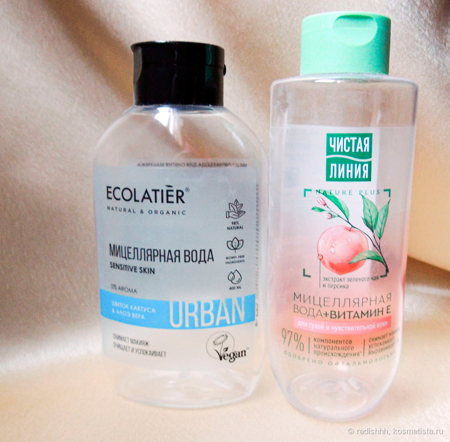У «Чистой лини» в коллекции выходят все новые варианты мицеллярок. Я решила взять что-то другое (моя любимая розовая с гиалуронкой) и в очередной раз не очень то и довольна. Данная водичка, в целом, с лица смывает макияж хорошо, но вот при попадании в глаза она их щиплет. Увы и ах. Я такое не люблю. Поэтому добивала ее сугубо при снятии косметики с лица.