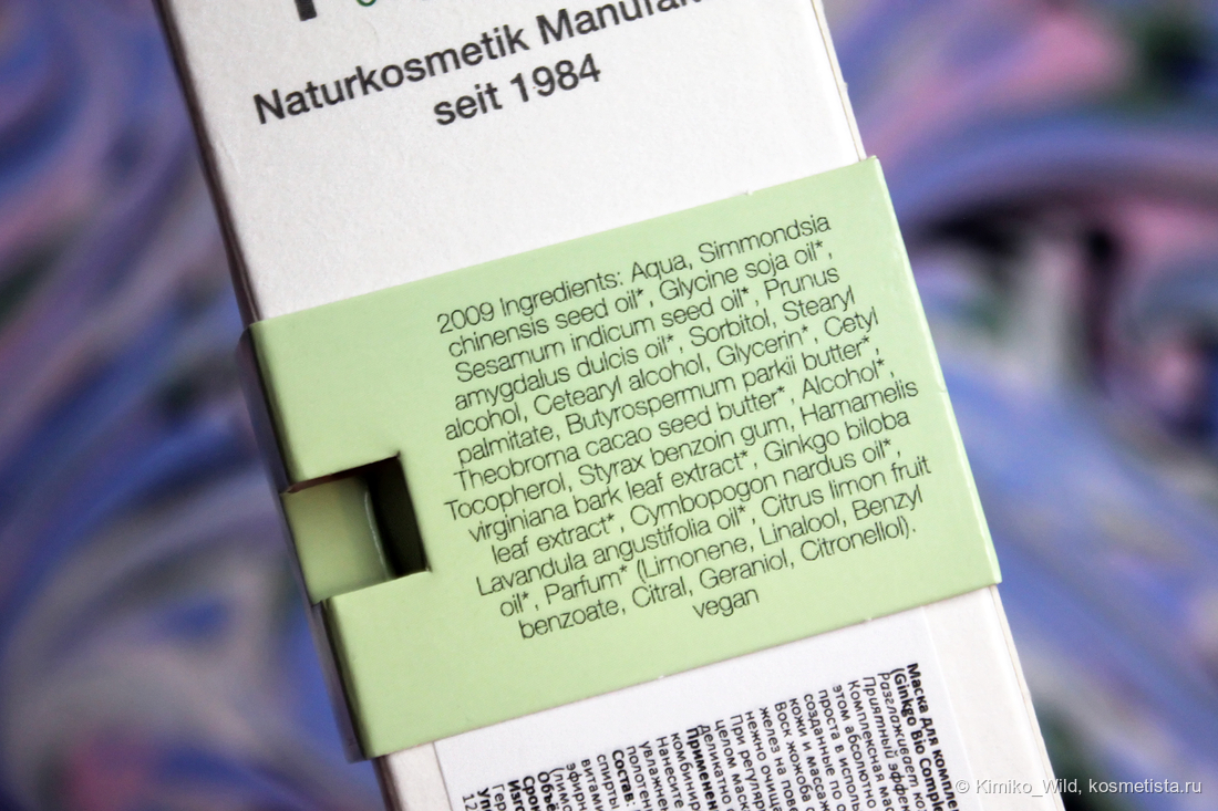 Именно к этой маске, оригинальное название которой звучит как Ginkgo-Bio-Complex Peeling (в русской интерпретации – маска для комплексного очищения лица «Гинкго и Жожоба»), присматривалась давно; пробовала на выставках, когда встречала марку, извела несколько миниатюр (несмотря на объем в 7 мл, даже одного тюбика вполне достаточно, чтобы сложилось впечатление о средстве). Почему именно эта маска? Ведь в ассортименте марки есть и питательная маска, и глиняная, и увлажняющая, и с растительными энзимами…