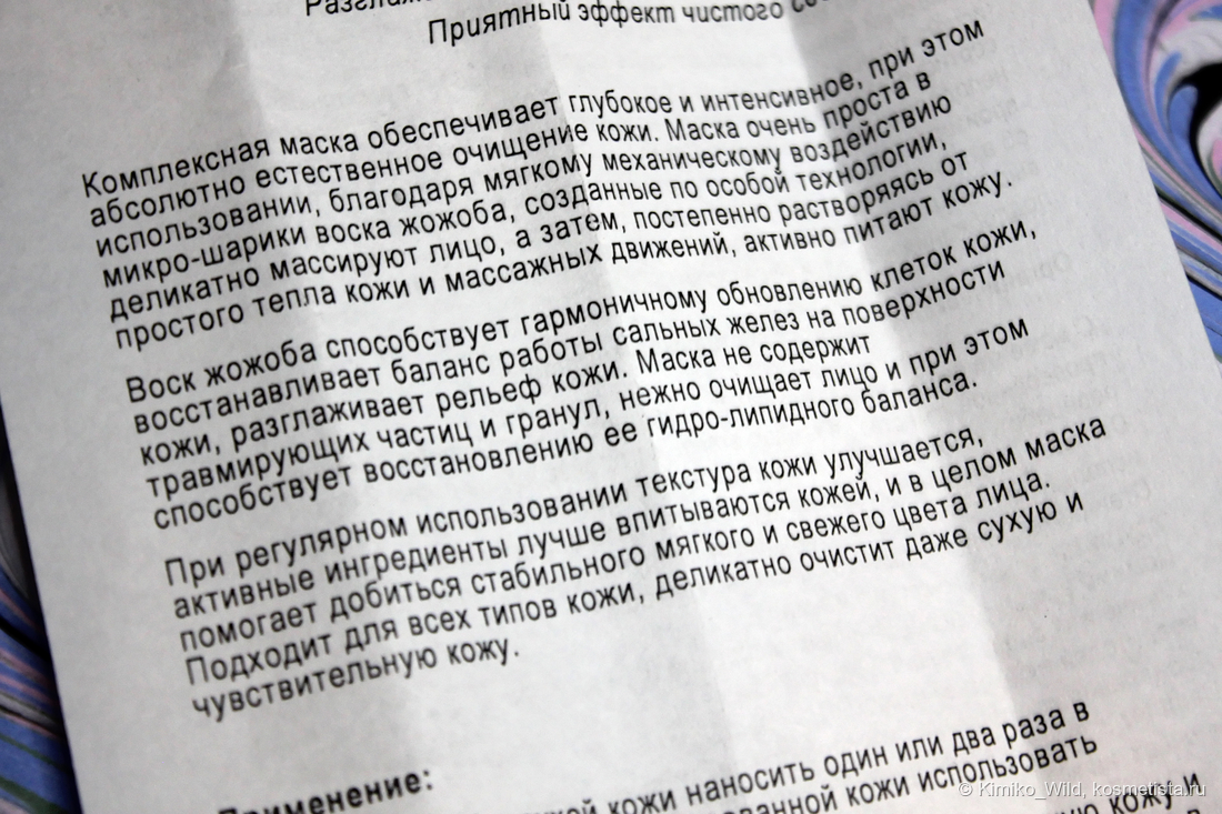 Маска, по моему опыту, многофункциональная. По инструкции ее рекомендуется наносить на сухую кожу. Но мне такой способ не понравился. Идеально – на распаренную кожу после душа или во время приема ванны. Так, я считаю, и омертвевшие частицы кожи лучше отшелушиваются, и кожа более активно принимает полезные компоненты и увлажняющие масла. Я обычно легко массирую 1-2 минуты и потом оставляю маску еще на 1-2 минуты. А потом уже смываю.