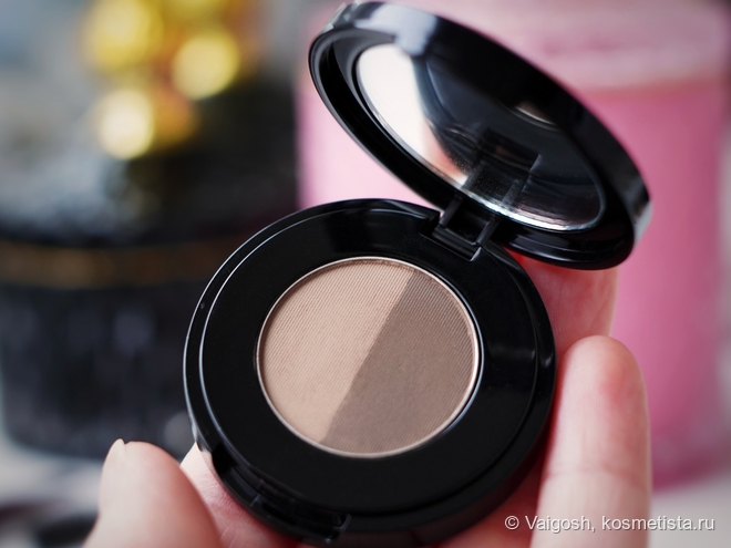 На ощупь тени твёрдые, суховатые и чуть шершавые, пигмент отдают достаточно легко, но не чрезмерно, пылят минимально и, в общем-то, хорошо себя ведут не только на бровях, но и на глазах тоже — запросто растушевывются и там, и там.