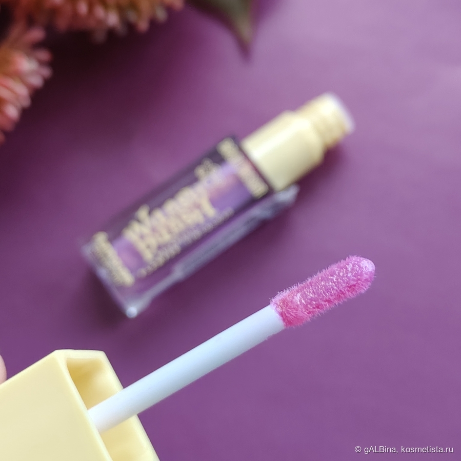 Оттенок полупрозрачный, розовато-фиолетовый с золотыми блёстками.