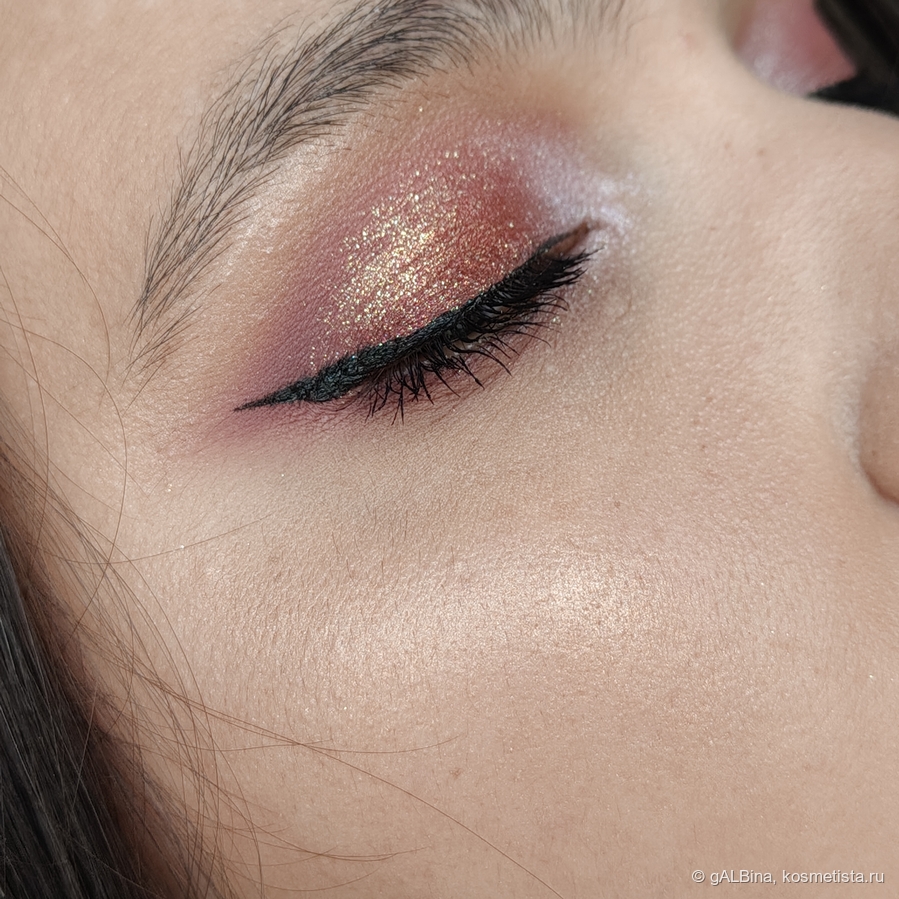 Именно демакияж этого оттенка на мой взгляд лучше сначала удалить основную массу сияющих частиц и потом только всё остальное смывать.