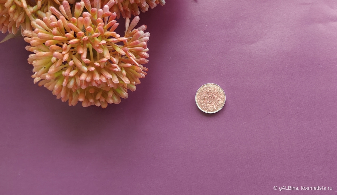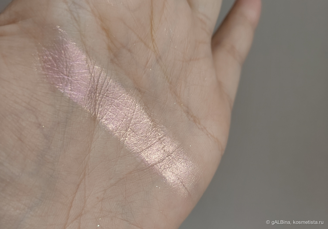 Золотистое сияние на нежно розовой базе. На влажной базе раскрывается лучше.