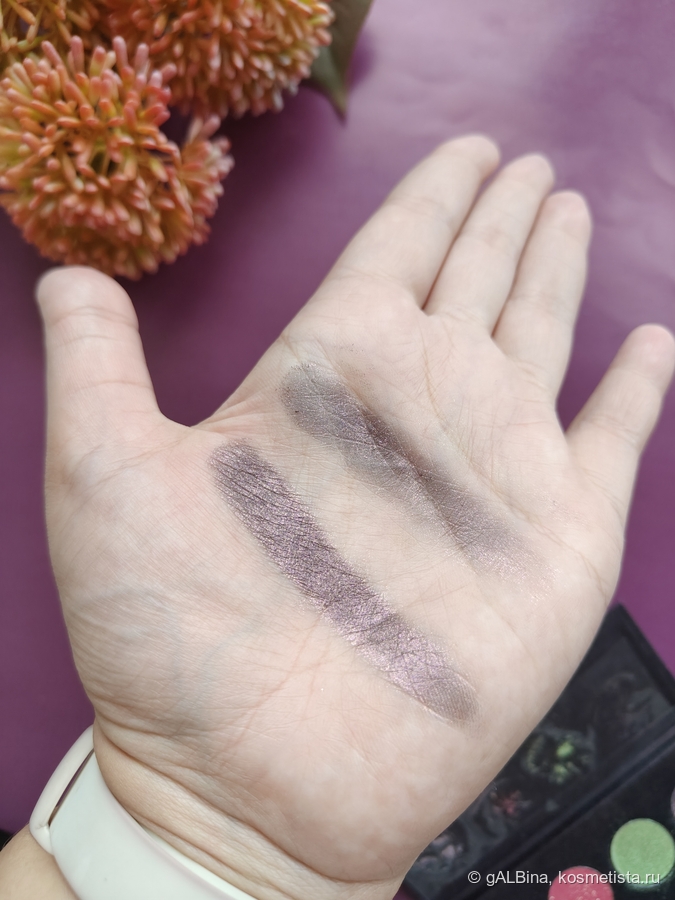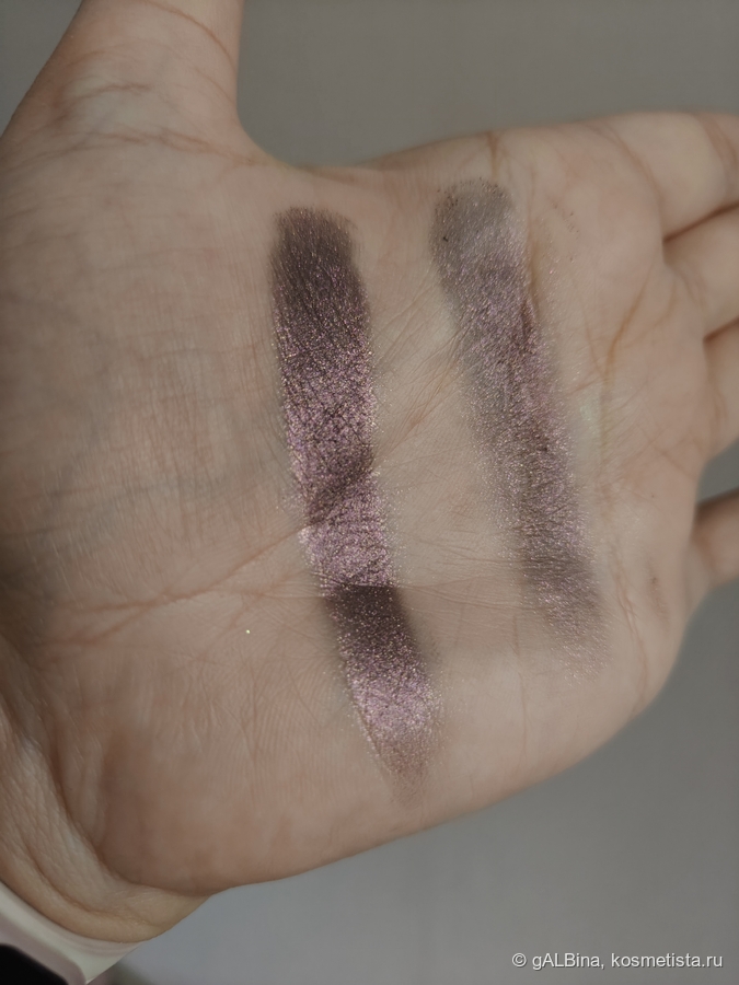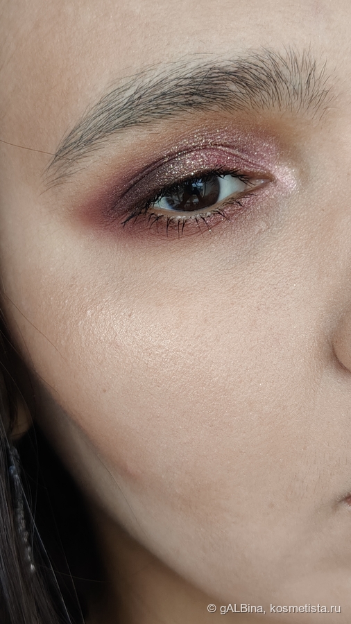 Оттенок довольно сияющий, при нанесении будет много осыпаний.