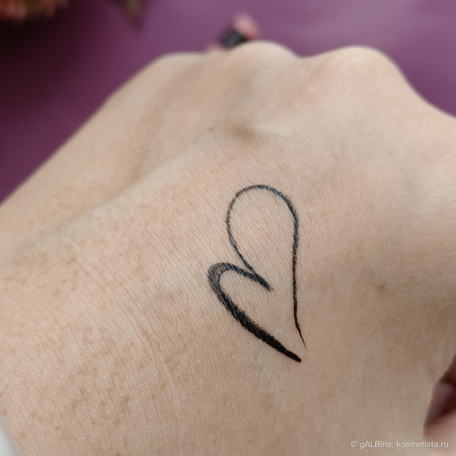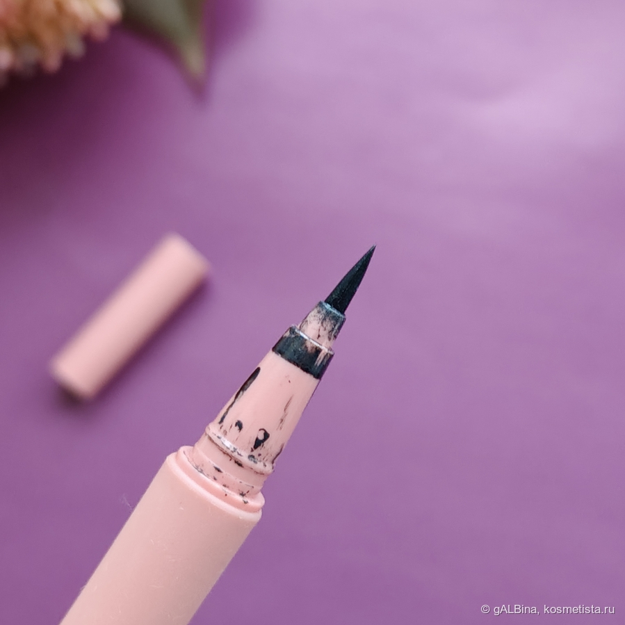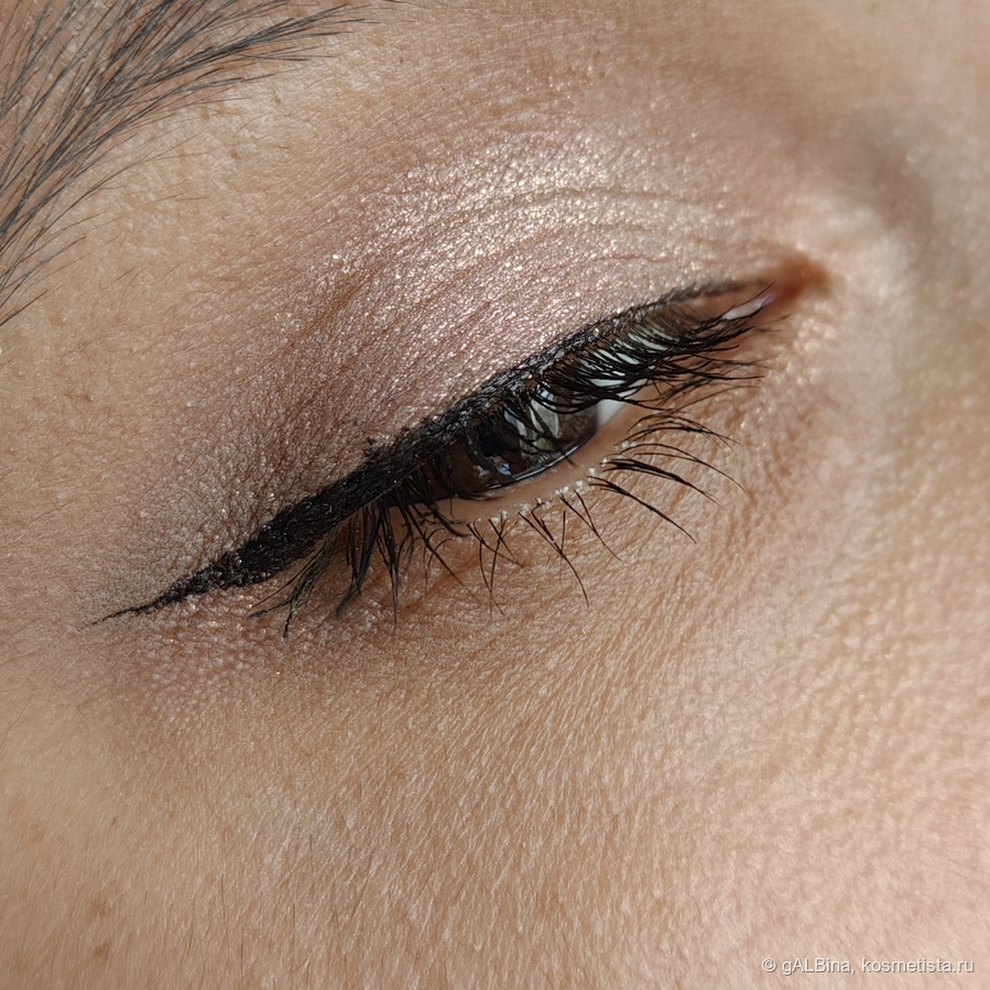 Здесь я планировала нарисовать тонкую стрелку, но так как она размазалась пришлось утолщать. Очень медленно засыхает, лучше не моргать в этом время. Думала буду использовать, но в итоге ею обычно подправляю где моя нормальная подводка отказывается рисовать.