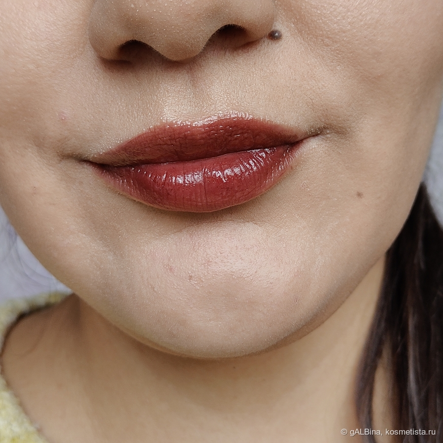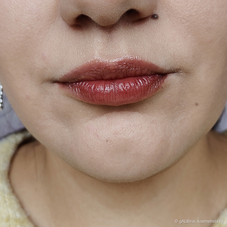 Много этого средства лично я наносить не могу, рот прямо жутко горит. Он перечный. Терпеть для меня это пламя мучительно, в один слой только. Даёт довольно яркий розоватый тинт. На мне выглядит так, не сильно заметно: