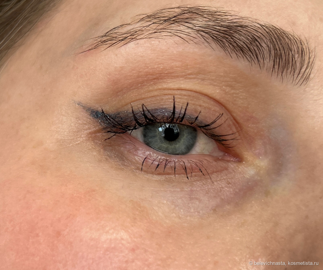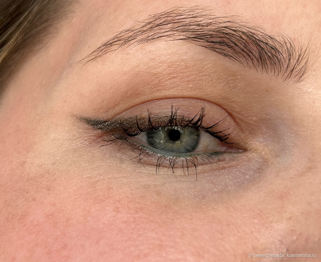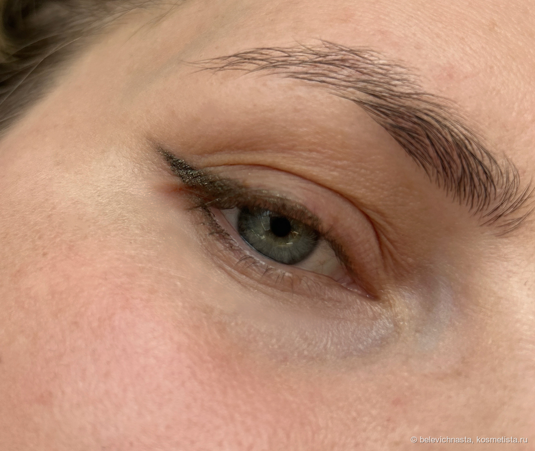 Удивительны эти карандаши своей стойкостью. 24-H или не 24-H, с базой или без, но стойкость поражает. Даже без подложки и базы они не смазываются, не стираются и не отпечатываются. Кончик стрелки остается четким до самого демакияжа.