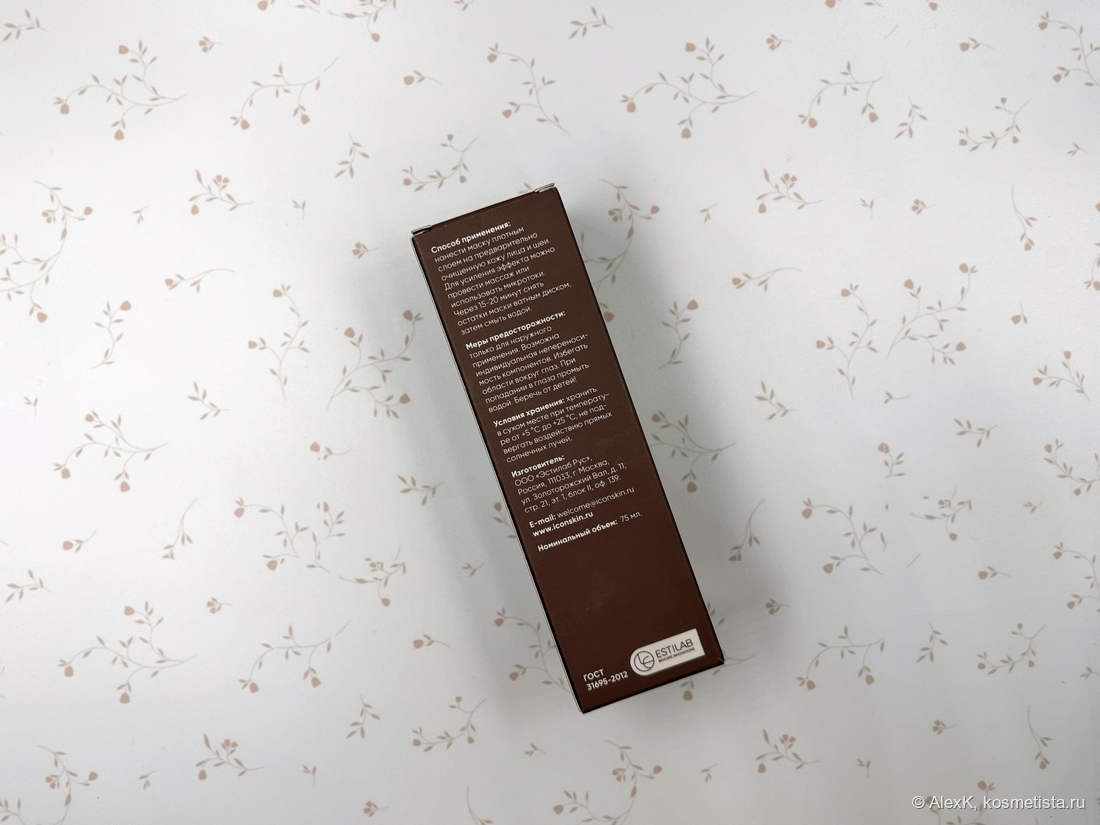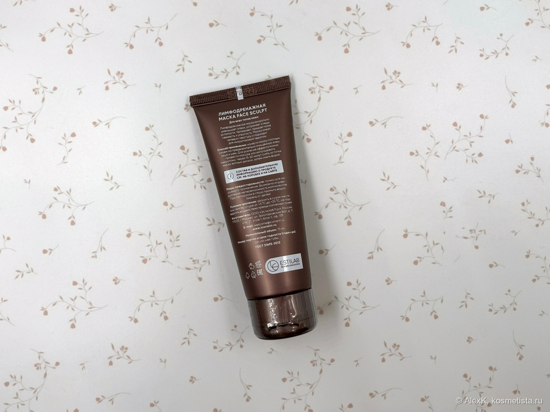 Упаковка. Маска приехала в коричневой коробке — это цвет лимфодренажной линии. Внутри — мягкий пластиковый тюбик. Крышка формата флип-флоп защищена термопластиком с перворацией. Флакон мягкий, крышка широкая: удобно пользоваться и хранить на полке вверх дном.
