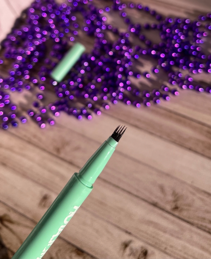 Лайнер рисует тонкими линиями, но если нажать сильнее, то получается более широкая линия для заполнения пробелов. Поэтому для прорисовки волосков движения нужно делать легкими. Пользоваться лайнером комфортно: он не царапает и не тянет кожу. Им также удобно рисовать идеально четкий хвостик брови.
