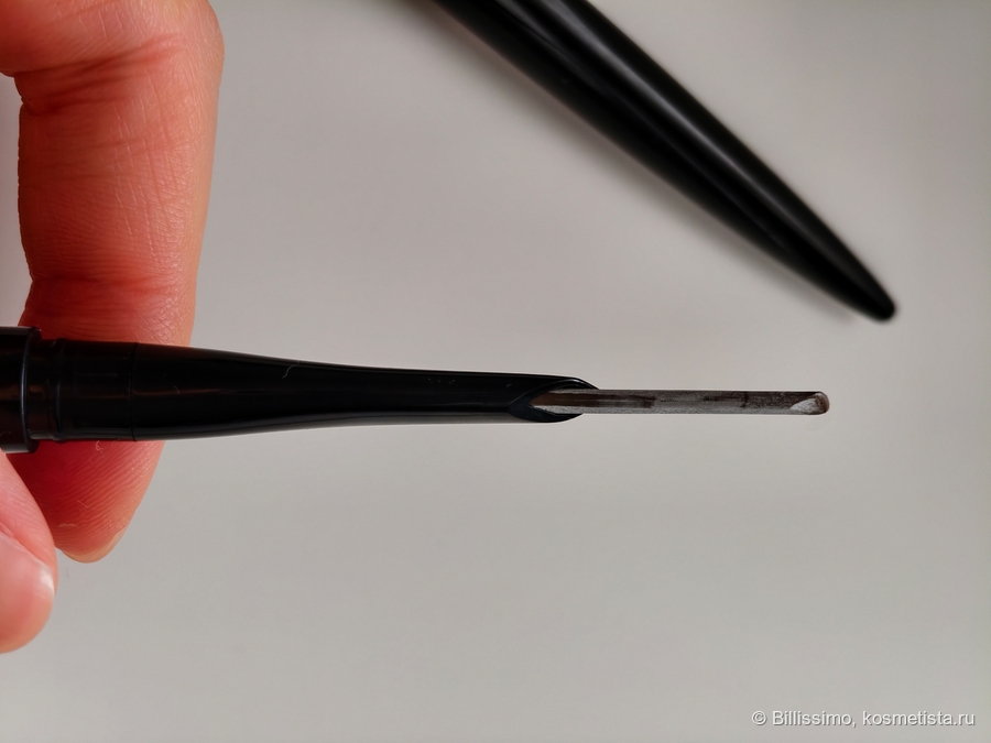 Это автоматический карандаш для прорисовки тонких волосков в техники микроблейдинга. Здесь скошенный кончик грифеля, острый край которого позволяет рисовать действительно тонкие линии. Форма этого стержня выгодно отличает его от предшественника Brow arcade slim, который подходит больше для заполнения формы, но не прорисовки отдельных волосков.