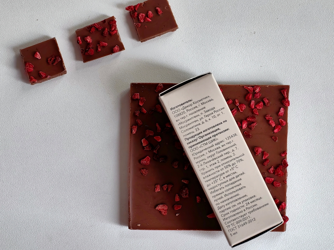 Масло едва уловимо пахнет шоколадом. Запах не то, что не остается на губах, даже просто чтобы его почувствовать нужно разве что в нос аппликатор не запихнуть. Вкуса нет.