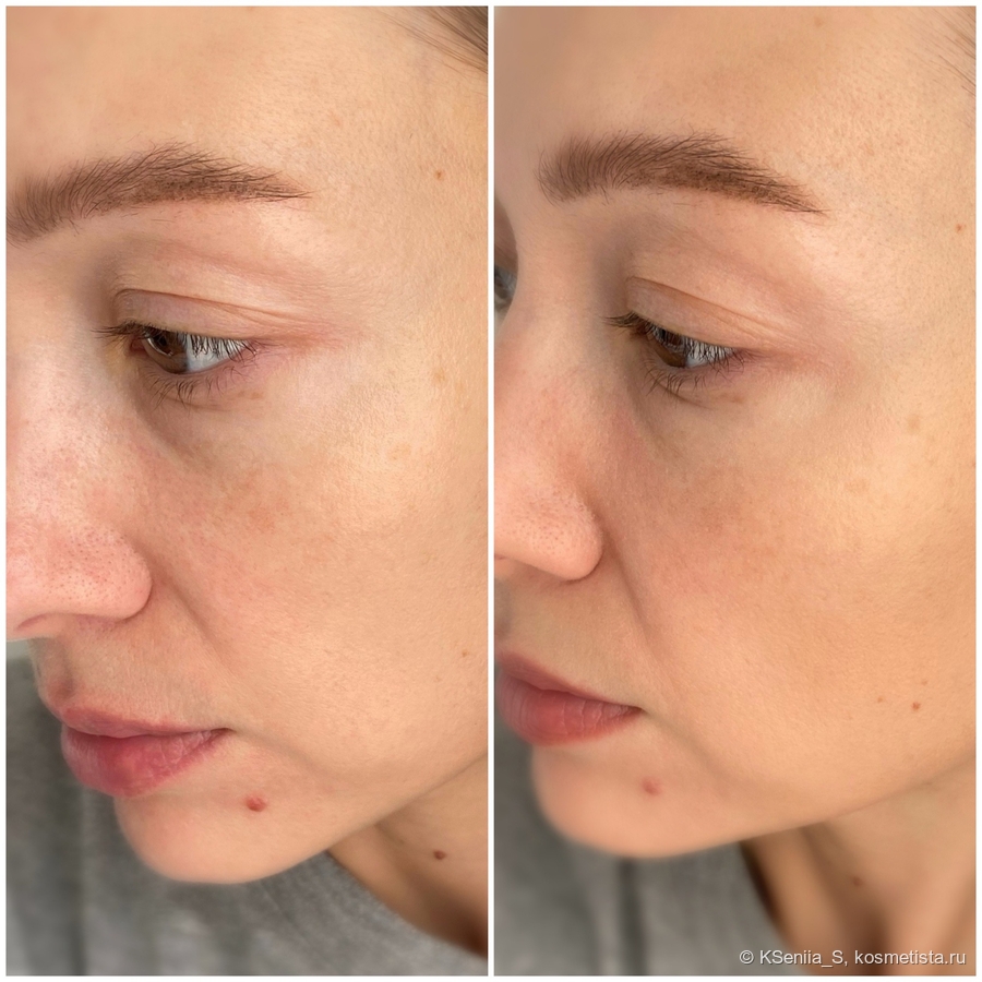 Благодаря полупрозрачной текстуре пудра ложится невесомо, блюрит кожу, поры не сглаживает, но и не выделяет. Недостатки в виде высыпаний/сосудов/пигментации не скроет, но общий тон выровняет, визуально сгладит морщины. Для возрастной кожи идеально.