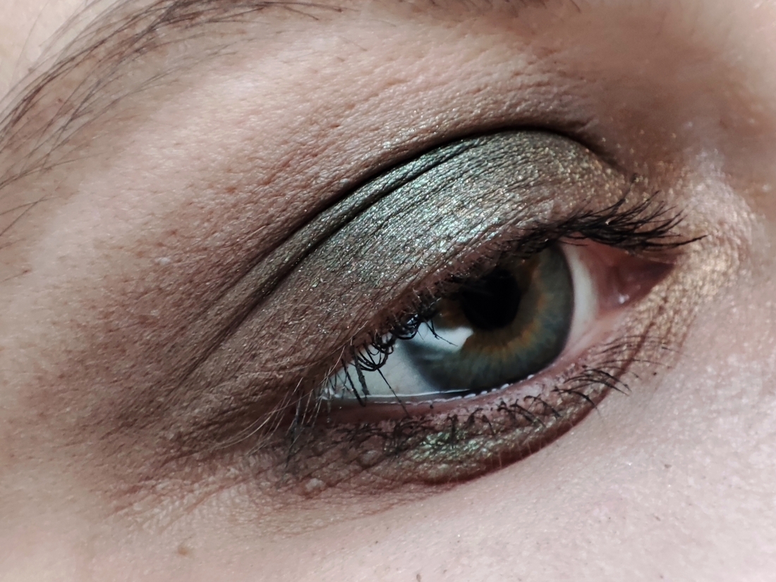 Номер 11. Бронзовый металлик на землистой базе. Спрессован плотно. Набирается легко. Не замыливается.