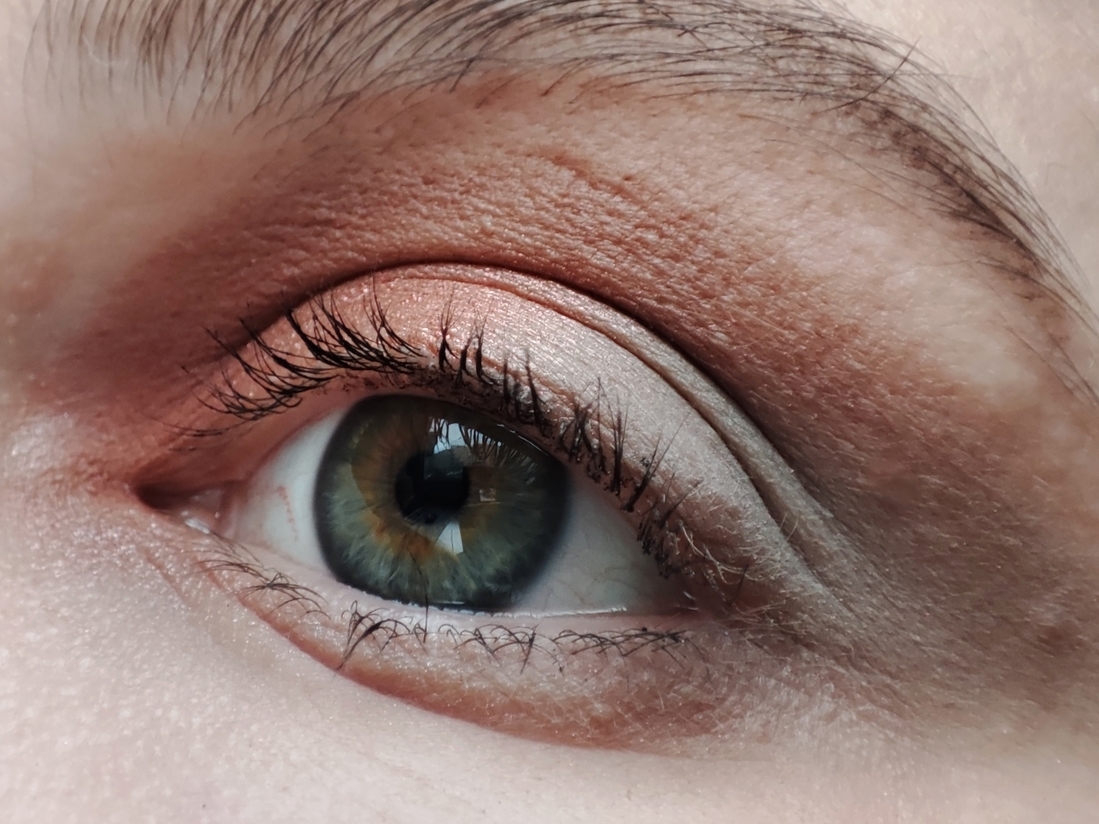 Номер 1. Яркий персиково-розовый металлик. Оттенок спрессован плотно, набирается тонким ярким слоем. Отдает цвет хорошо. Не замыливается.