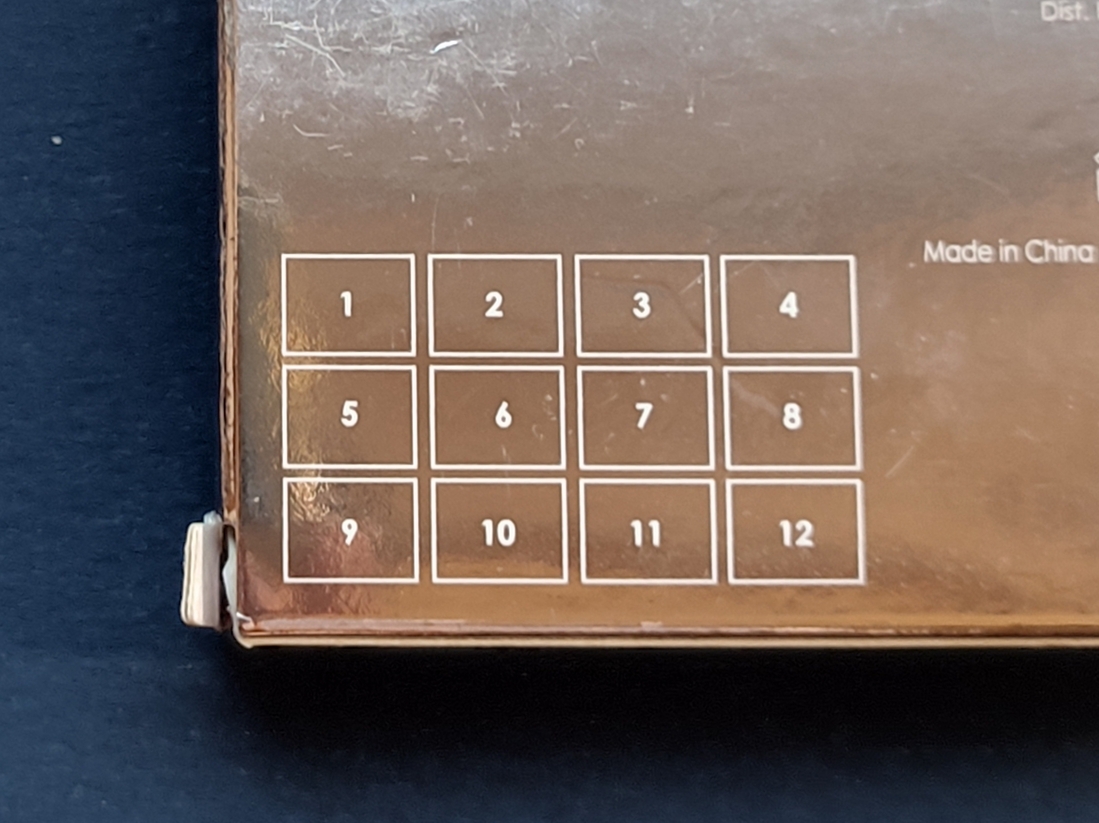 Упаковка. Палетка приходит в тонкой картонной коробке. В моей была внутри ещё приклеена пищалка от воров. Ходила, пищала везде. И не понимала, чё орет. А это я из будущего ору.