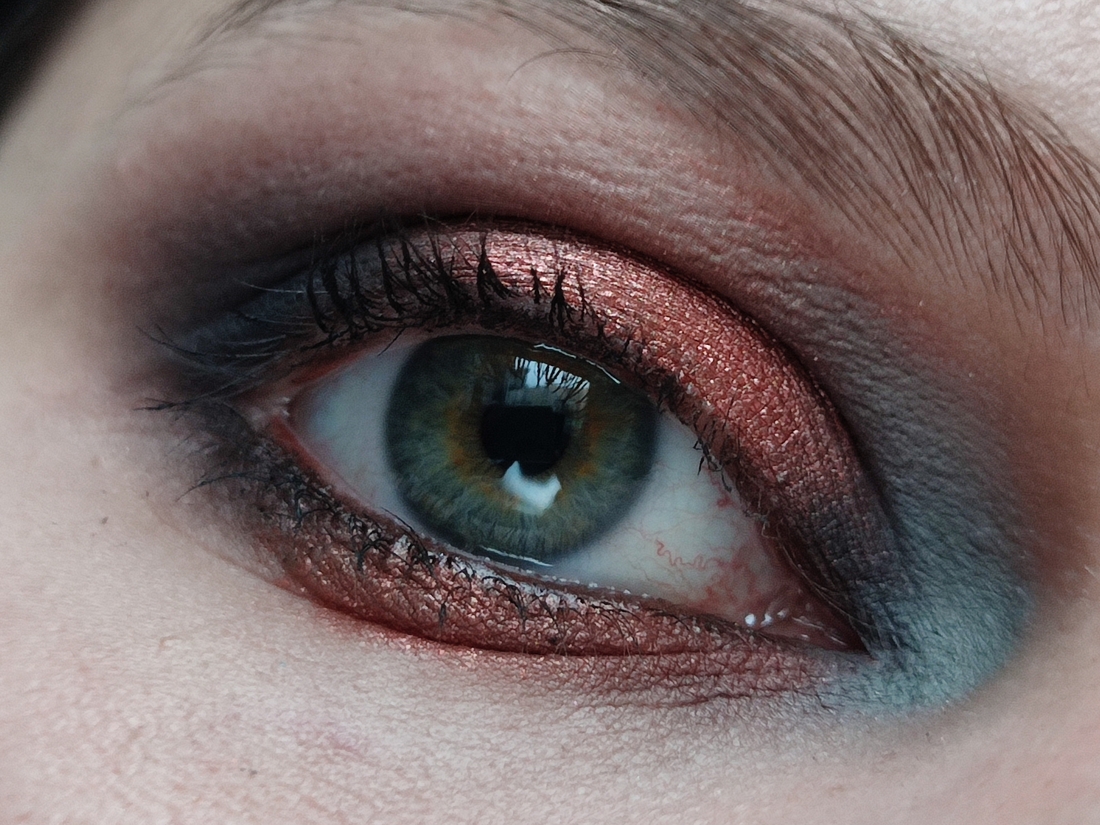 Из плюсов: кроме синего, ни один оттенок не осыпался и ни один оттенок не скатался на моих капризных веках. В целом меня порадовали сияшки. Самый светлый персиковый понравился, светлый серый и лиловый — ещё можно натянуть, они беспроблемные с базой. Но все для чего она покупалась меня очень расстроило: надо думать, чтоб не сделать грязь.