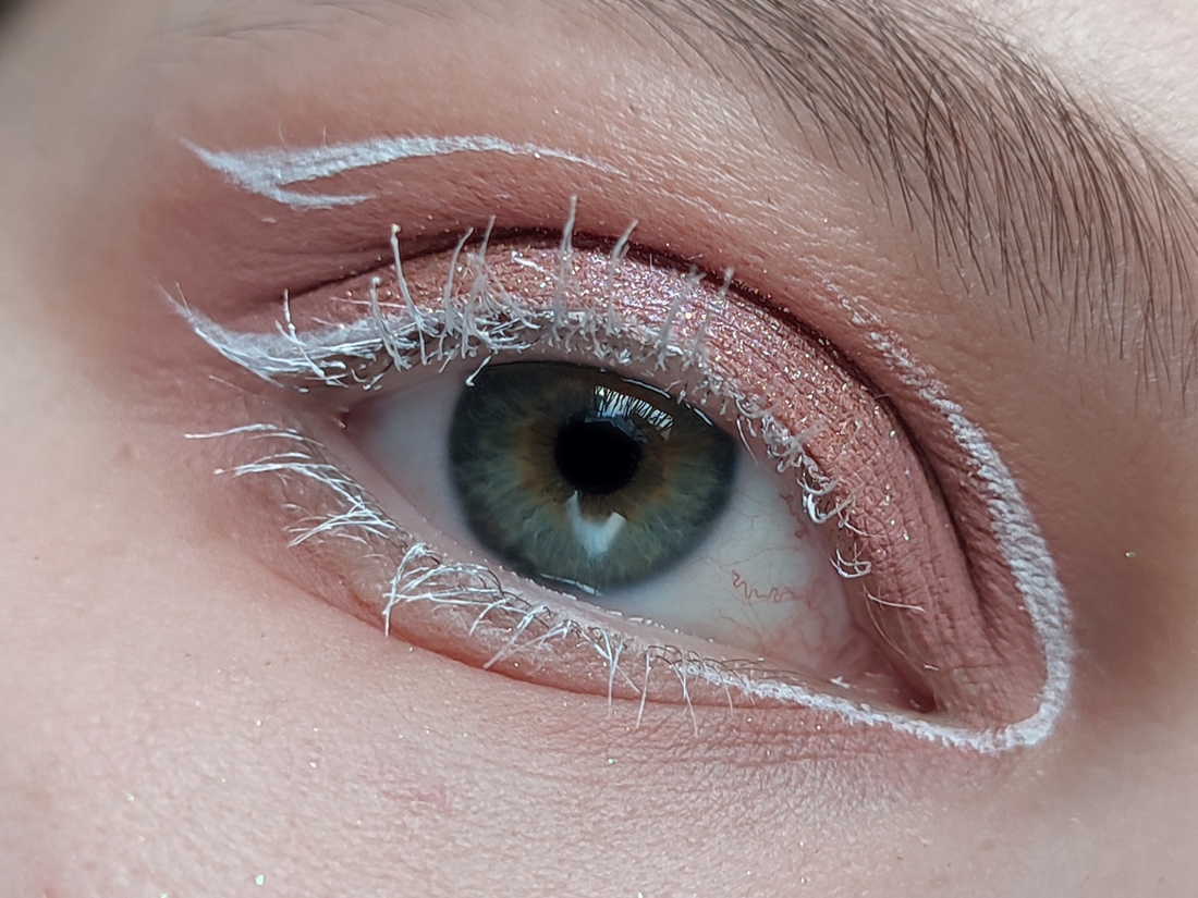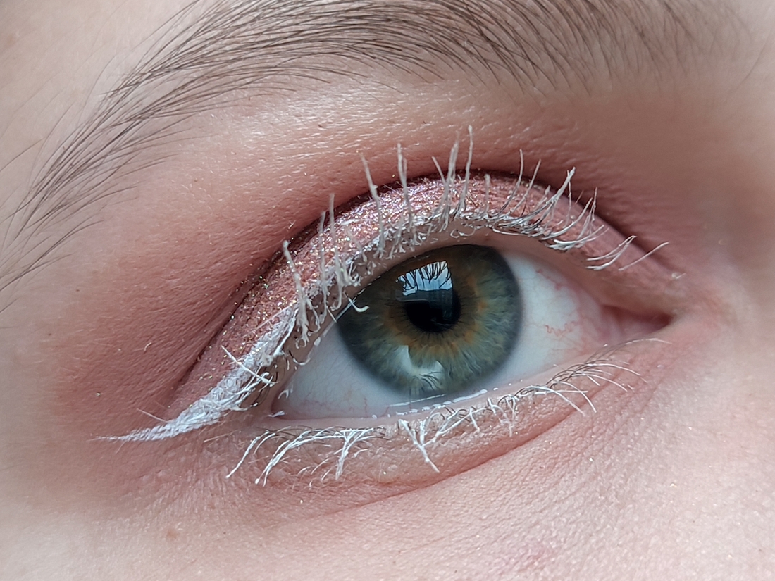Не припудренный консилер. Корректировщик инея нанесен на все подвижное веко.