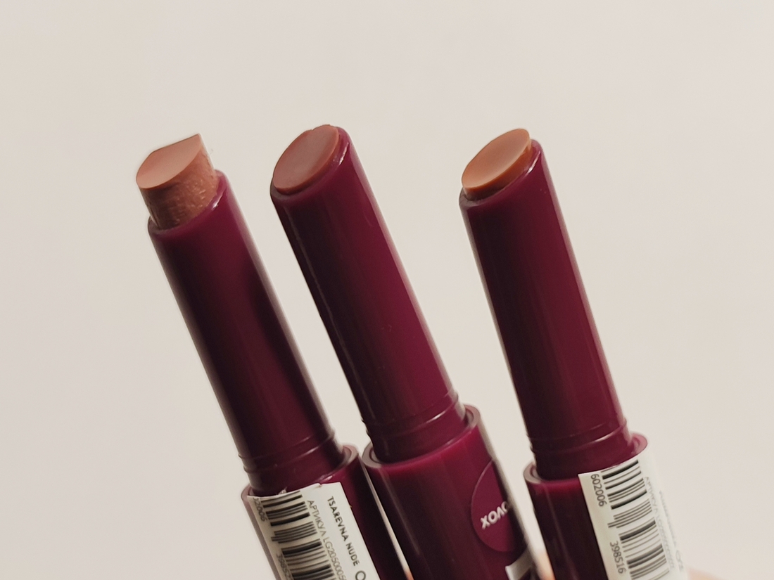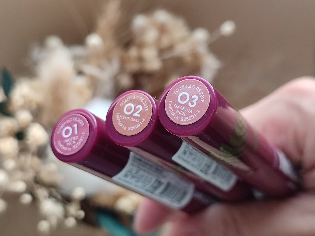 Текстура и свойства у всех помад плюс-минус одинаковые. Это тающие бальзамы. Обвалакивающие как губы, так и края стика.