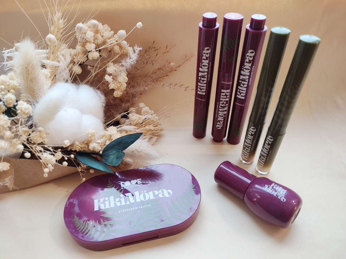 Оформление — брусничный сок и папоротники. Как и у всей коллекции. О своем болотном улове я уже немного писала: про тинт можно почитать тут, о палетке и подводках — тут, тут и тут. Рекомендую, там красивые макияжи!