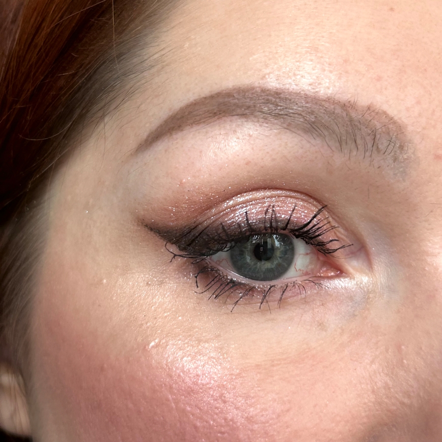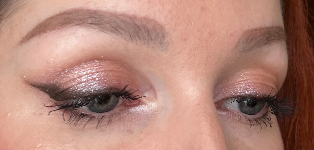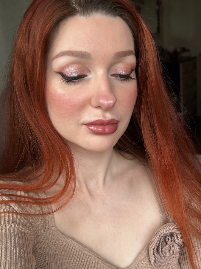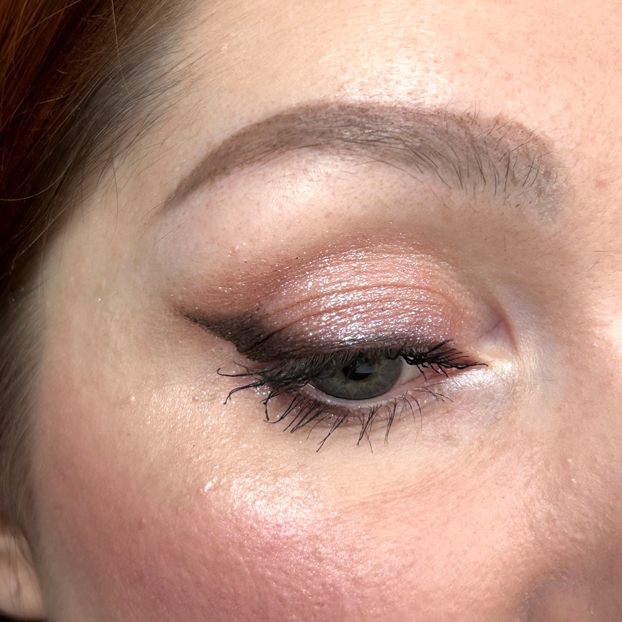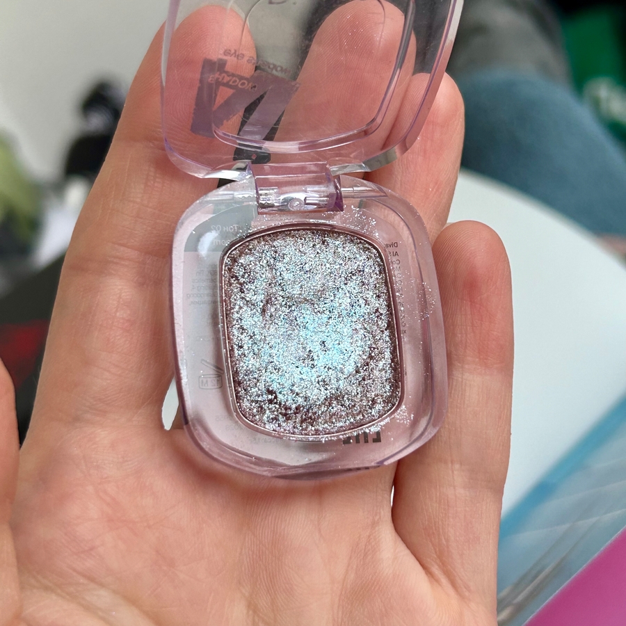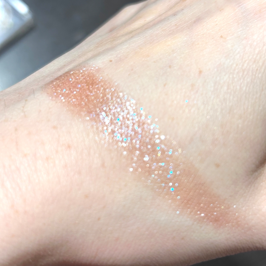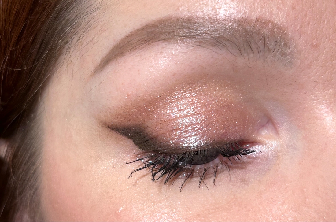 Эффект на веках влажный, сияющий. Здесь действительно много сверкающих частиц, эффект не для скромниц.