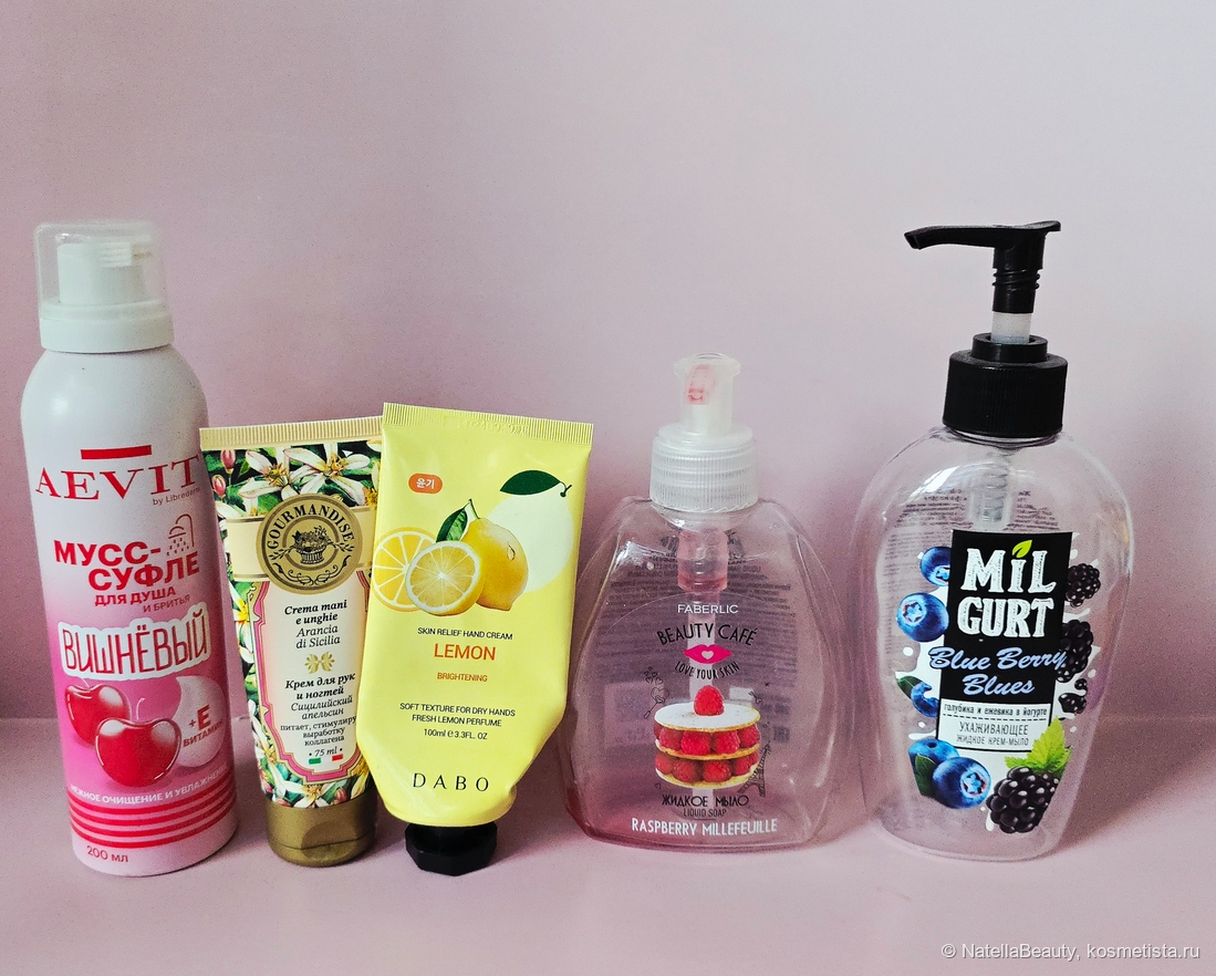 Faberlic Beauty Cafe «Малиновое пироженое» жидкое мыло — это пушка! Даже супруг сказал, что мыло очень вкусно пахнет и нужно повторить. Аромат на всю ванну, не приторно, малиновый джем. Очень вкусно. Само мыло отличное. Постоянно покупаю мыло из этой линейки.