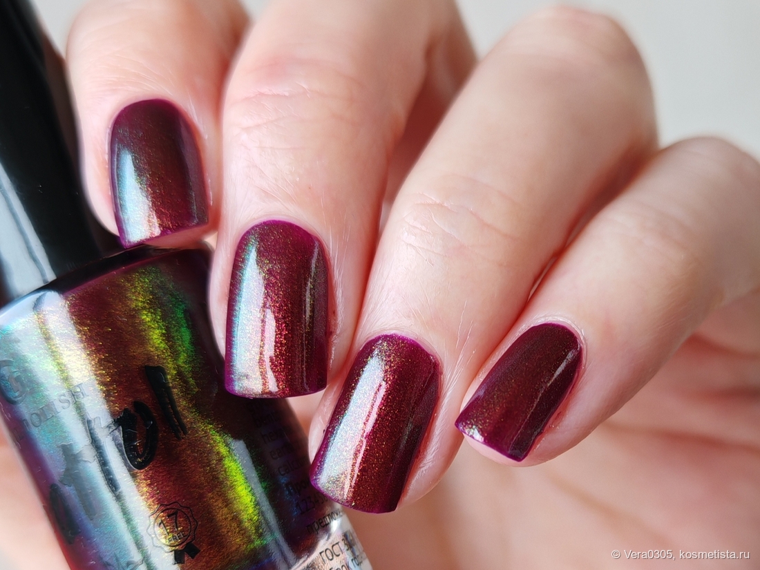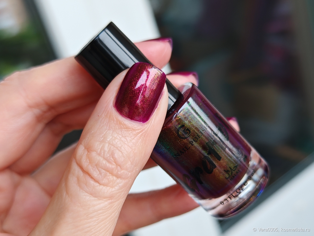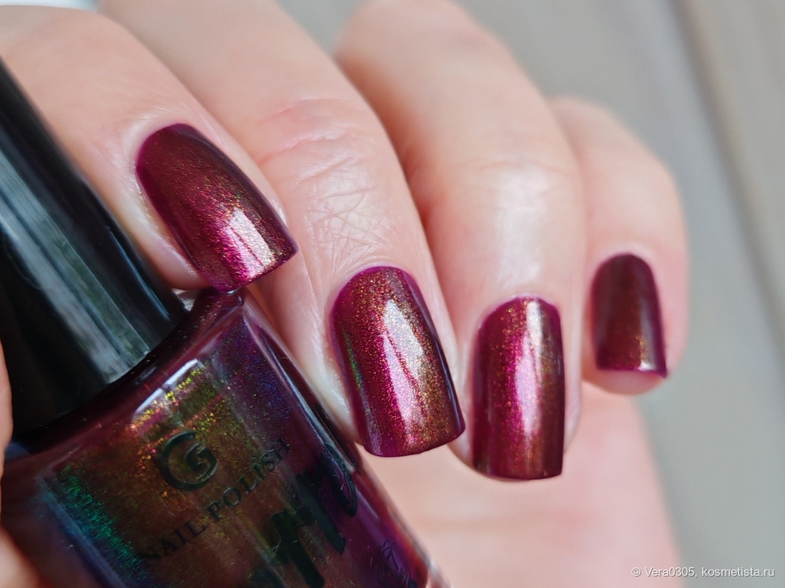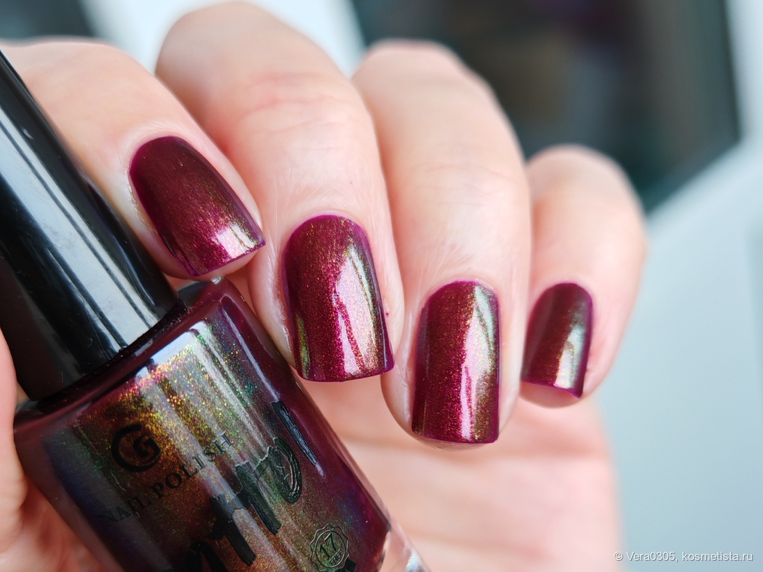 Буквально вчера на него смотрела и планировала к заказу, но, к сожалению, сильно отличается во флаконе и на ногтях (во флаконе, на мой взгляд, гораздо интреснее как это часто у Граттолов)(( А похожих вишневых у меня хватает.