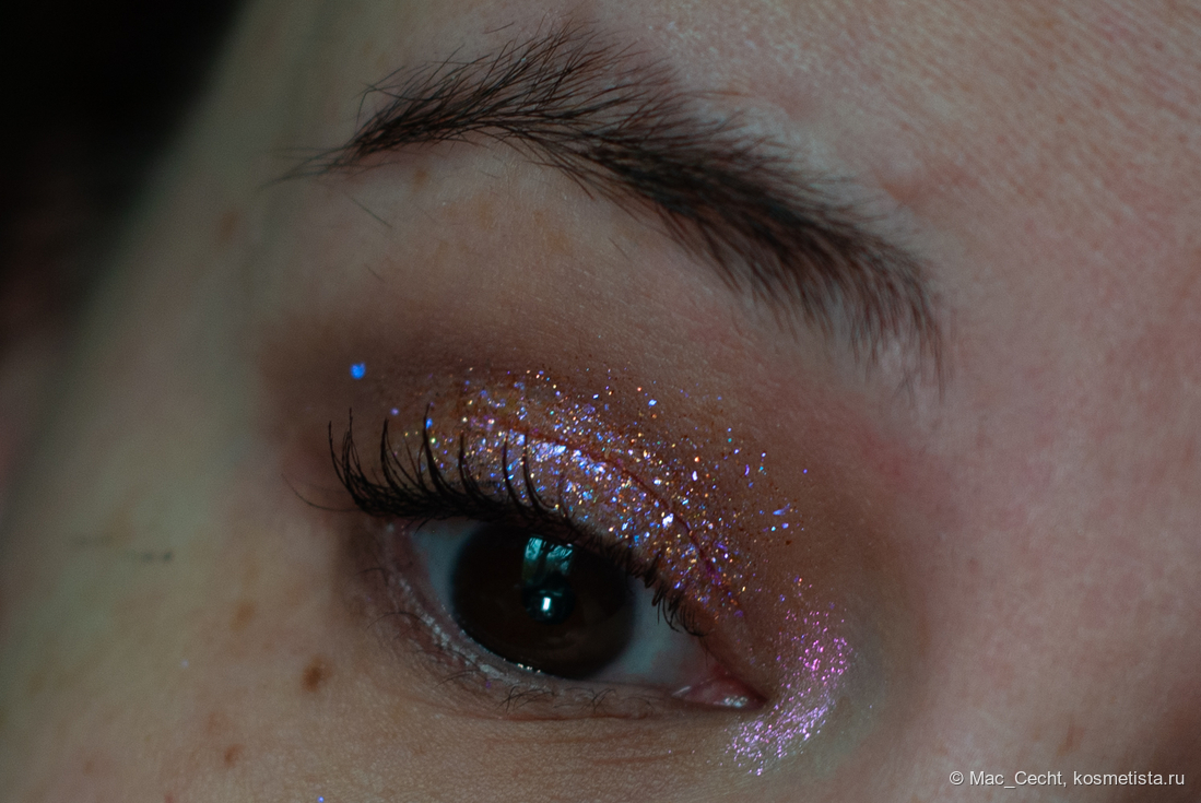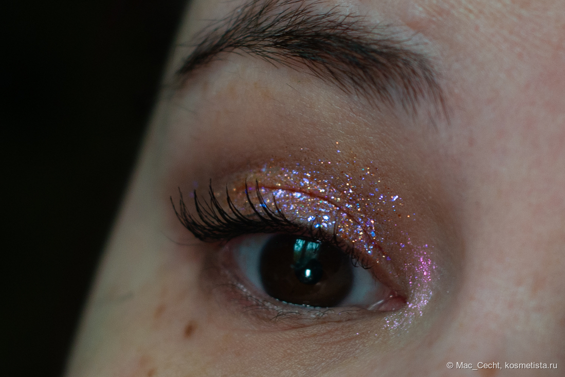 Осыпаются ли при носке? Тут как приклеишь. Если все уложить, то нет, а если будет торчать и висеть на ресницах — о да. Слюда, кстати, не колючая, комфортная, если в глаза засыпается, не колет. В общем, я очень люблю эти тени, мне невероятно красиво. Я заказала себе дубль на скидках 😊