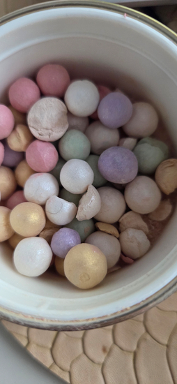 В баночку этого выпуска положили 5 видов шаров, в моем экземпляре их примерно поровну между собой: