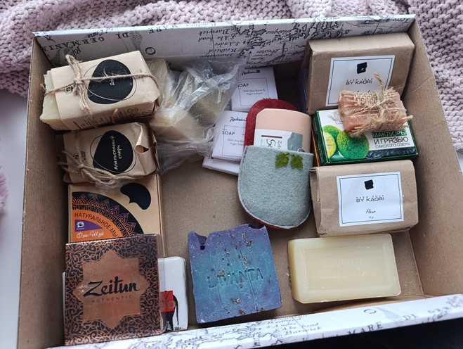 Мыло для тела «Голодный Леший», а именно: "Ветер", «Дом» и «Закат зимы». Это единственная эко-марка в подборке, причем по-настоящему «эко», потому что можно купить любое мыло бруском, без этикетки, посылка приходит в картоне, подозреваю, что всё перерабатывается (а мы сжигаем картон на даче). Я очень люблю эту марку, её концепцию (почти что домашнее производство), обожаю большую часть выпускаемых продуктов, годами покупаю их мыло и зубные пасты, а ещё крем, который заживляет ожоги и убирает сухость (моргните, если на него нужен обзор). Я люблю почти все бруски без отшелушивающих частиц, но розовый «Закат зимы» стал фаворитом из-за цвета, а «Дом» и «Ветер» из-за запаха.