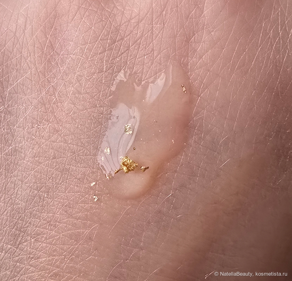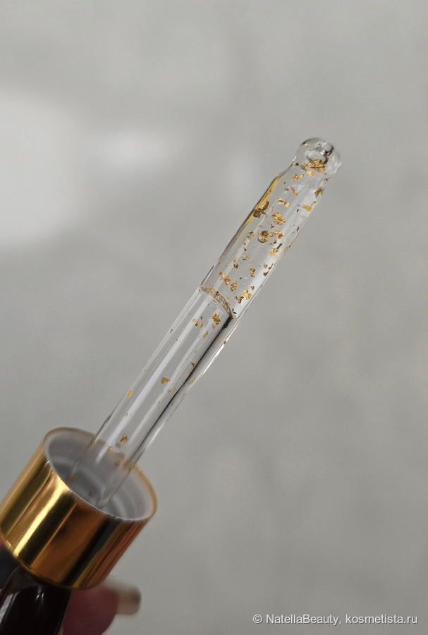 Кусочки золота радуют глаз, но на лице абсолютно не заметные. Но мне кажется, возможно, это я надумываю, но будто сыворотка обладает полсвечивающим эффектом.