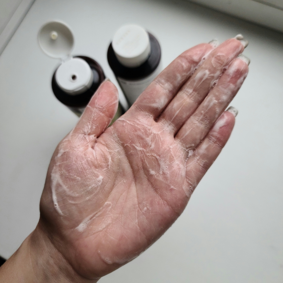Гель по цвету полупрозрачный, с коричневатым оттенком. Достаточно густой. Он хорошо пенится, мягко очищает и не нарушает естественный pH-баланс кожи. После использования не возникает чувства стянутости, даже если я не сразу наношу крем для тела. Также не оставляет липкой плёнки или блеска.